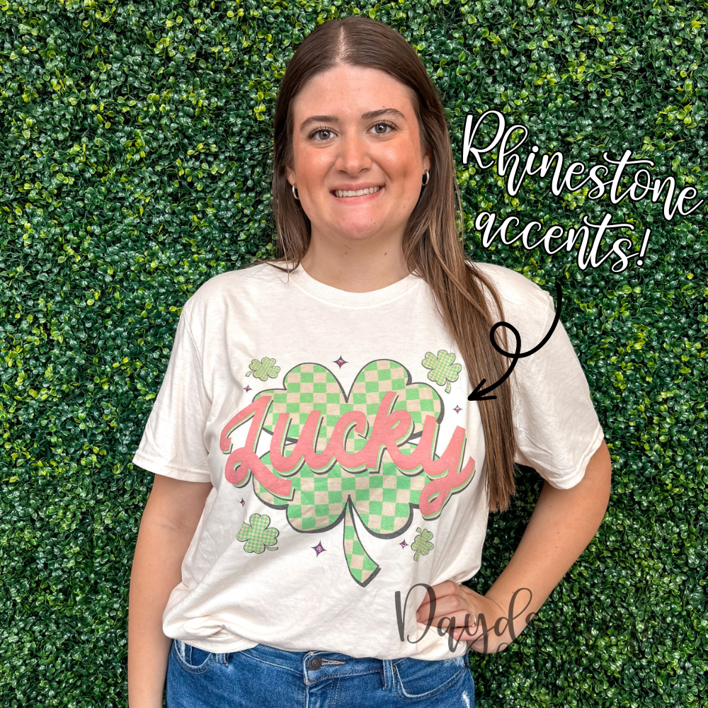 Rhinestones are permanently adhered to tees. Wash on cold and avoid high heat.