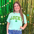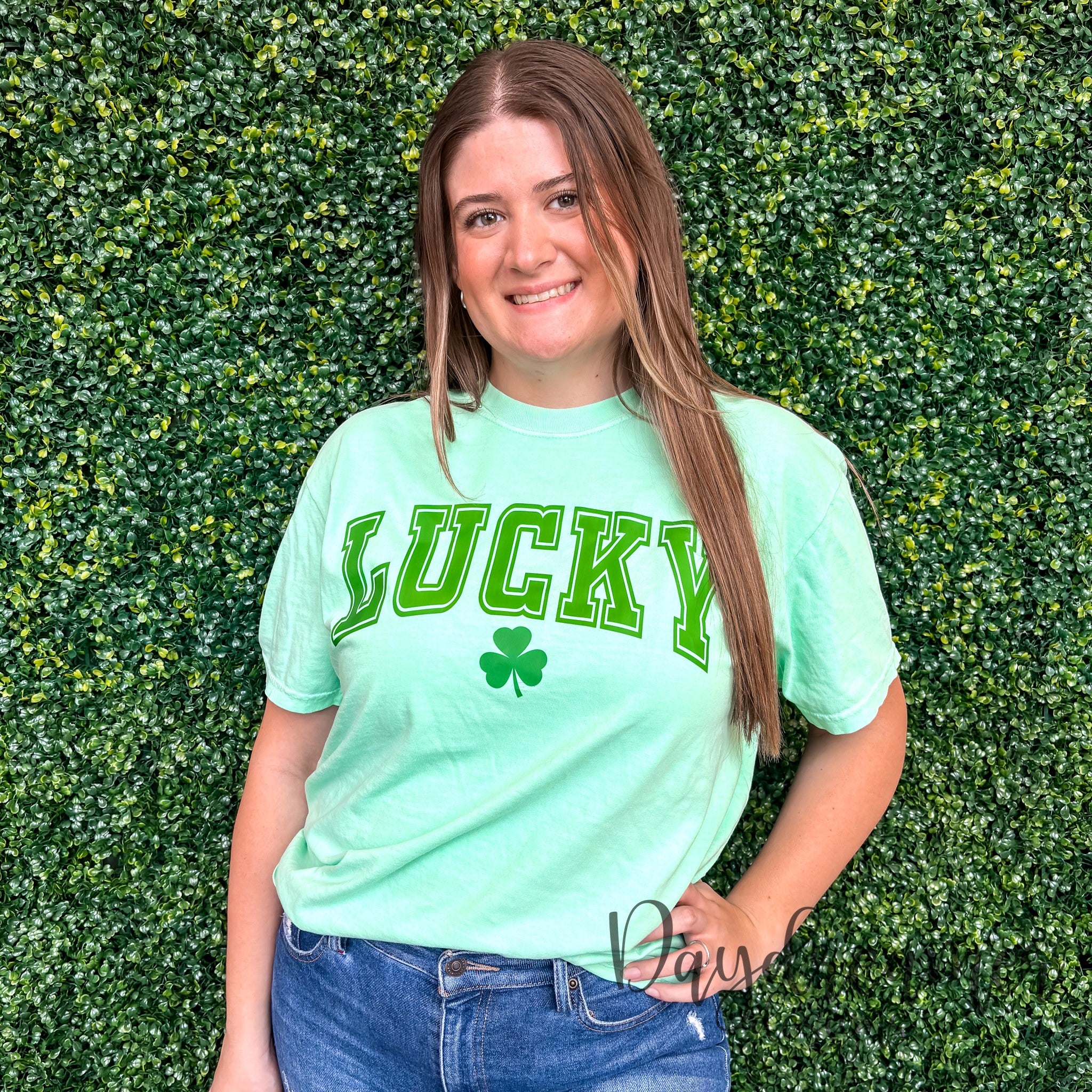 DTF (Direct to film) on a soft, poly/cotton, unisex tee. Tee brands and color shades may vary depending on availability. Size up for an oversized fit. Comfort Colors.