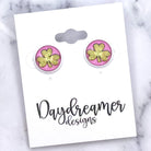 Shown are 12mm stud earrings. This is our most popular size for both adults and kids!
