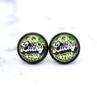 Shown are 12mm stud earrings. This is our most popular size for both adults and kids!