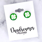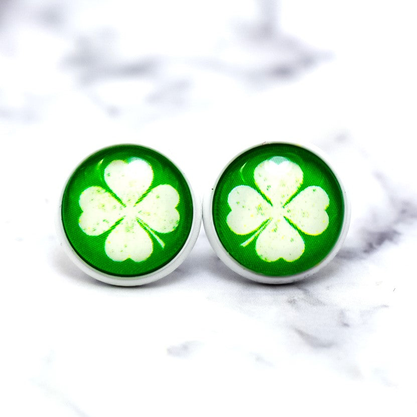 Shown are 12mm stud earrings. This is our most popular size for both adults and kids!