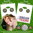 Shown are 12mm stud earrings. This is our most popular size for both adults and kids!