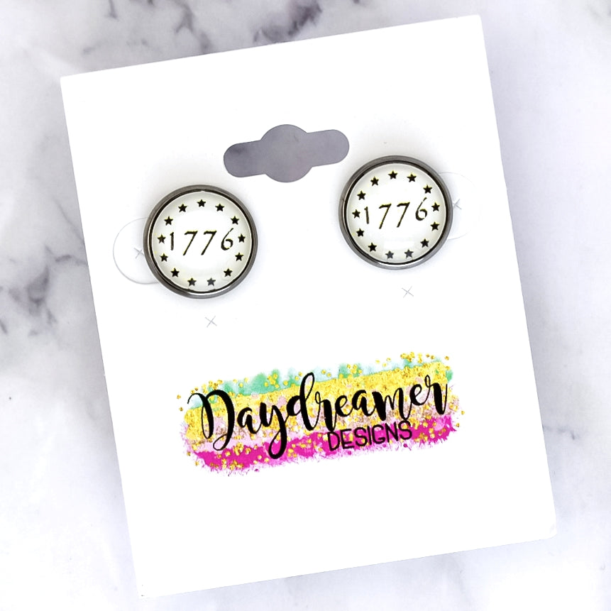 Shown are 12mm stud earrings. This is our most popular size for both adults and kids!