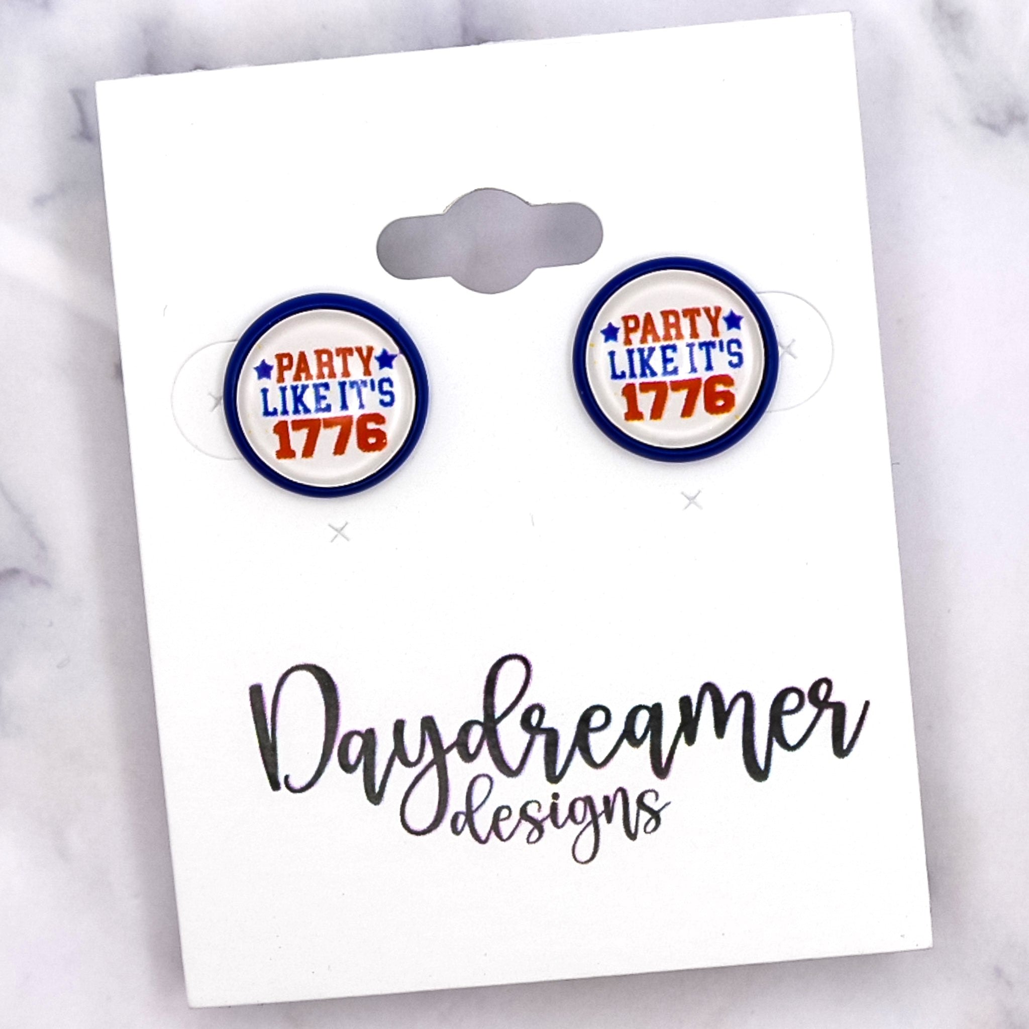 Shown are 12mm stud earrings. This is our most popular size for both adults and kids!