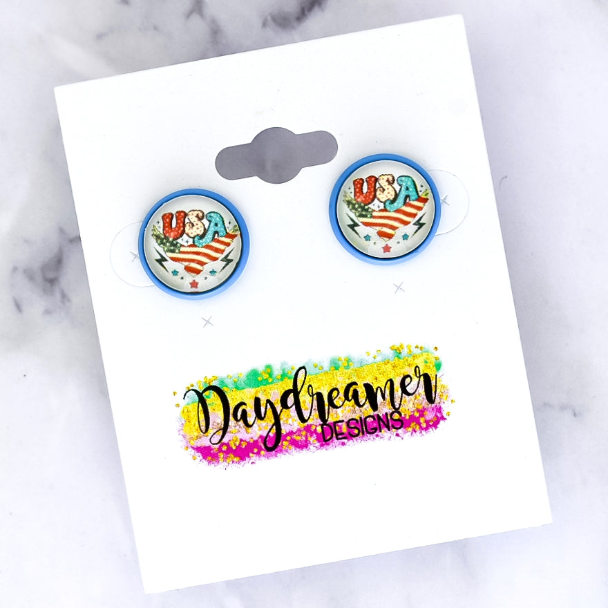 Shown are 12mm stud earrings. This is our most popular size for both adults and kids!