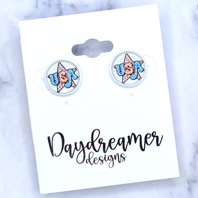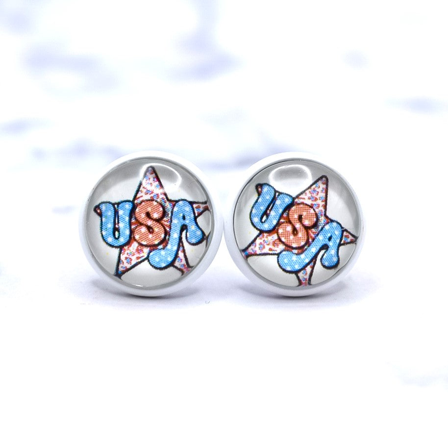 Shown are 12mm stud earrings. This is our most popular size for both adults and kids!