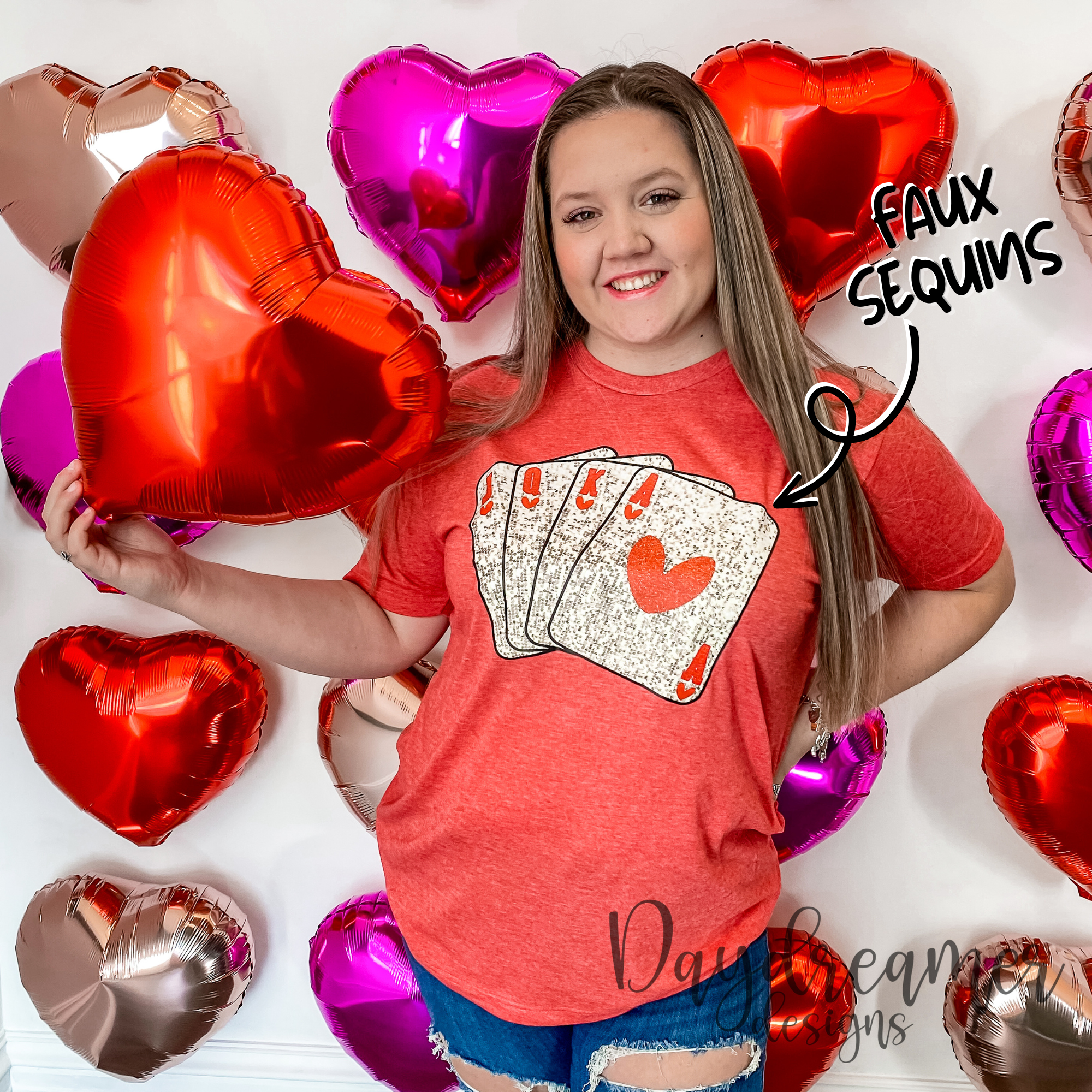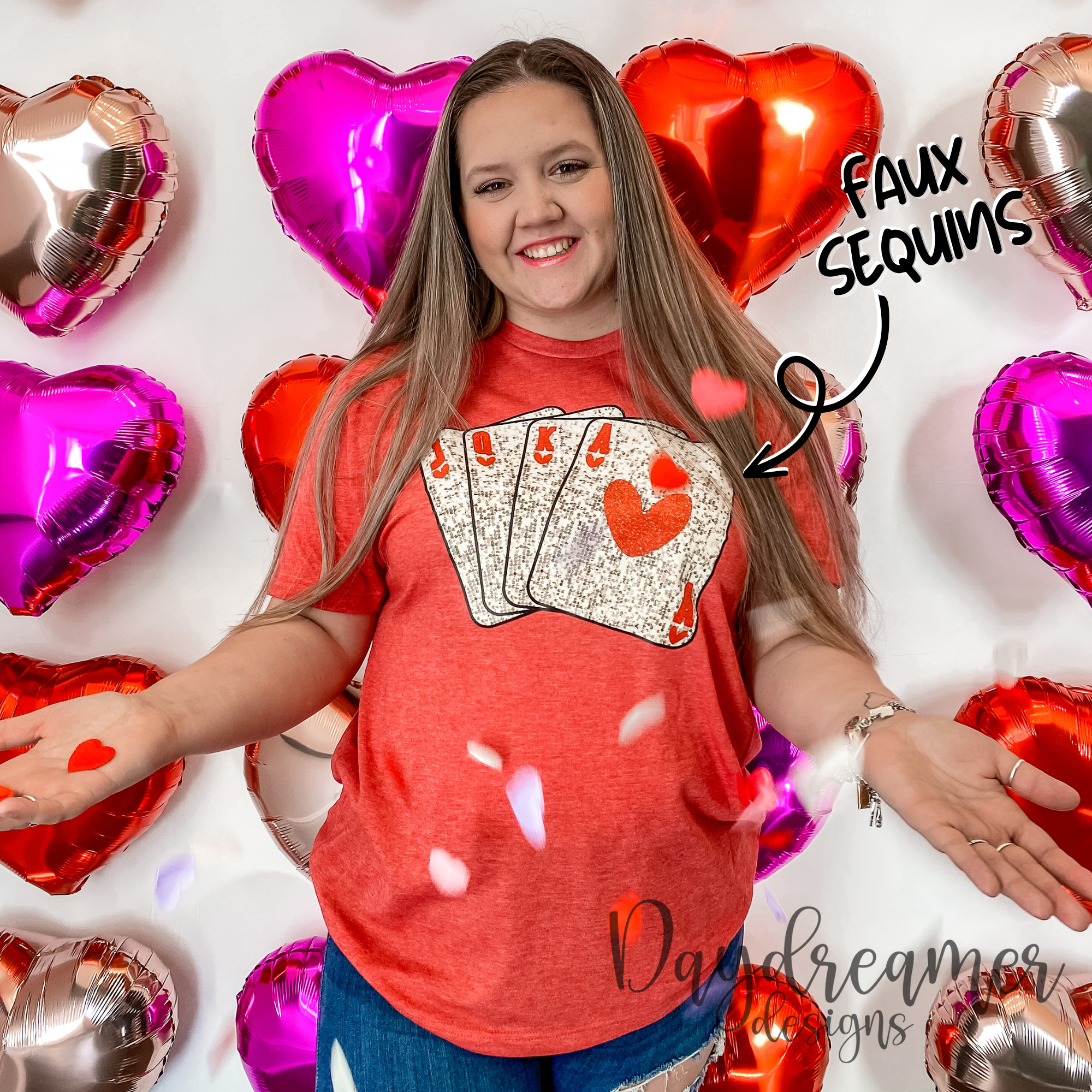DTF (Direct to film) on a soft, poly/cotton, unisex tee. The tee brand used is Tultex (Heather Red), however brands and shades may vary depending on availability. Size up for an oversized fit.