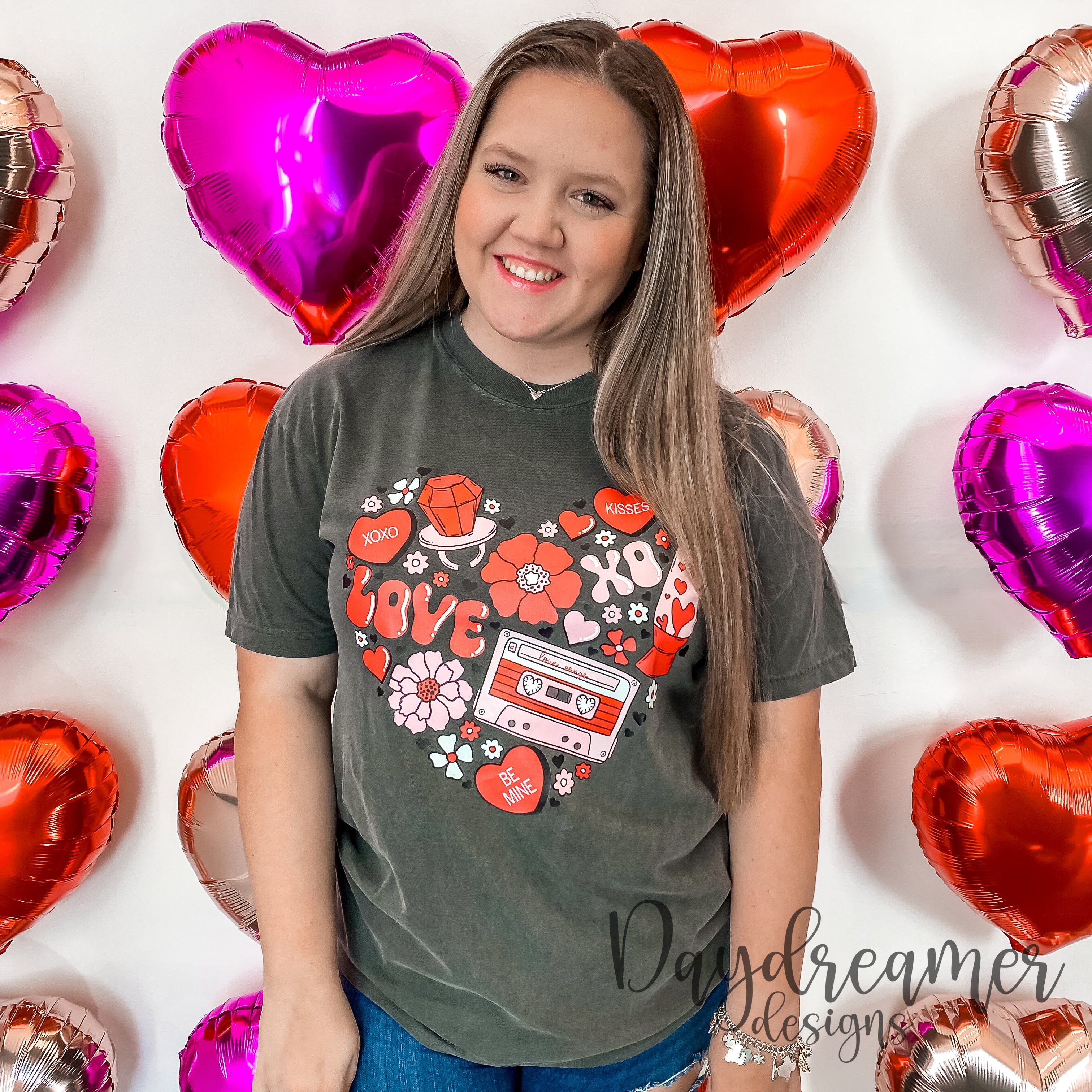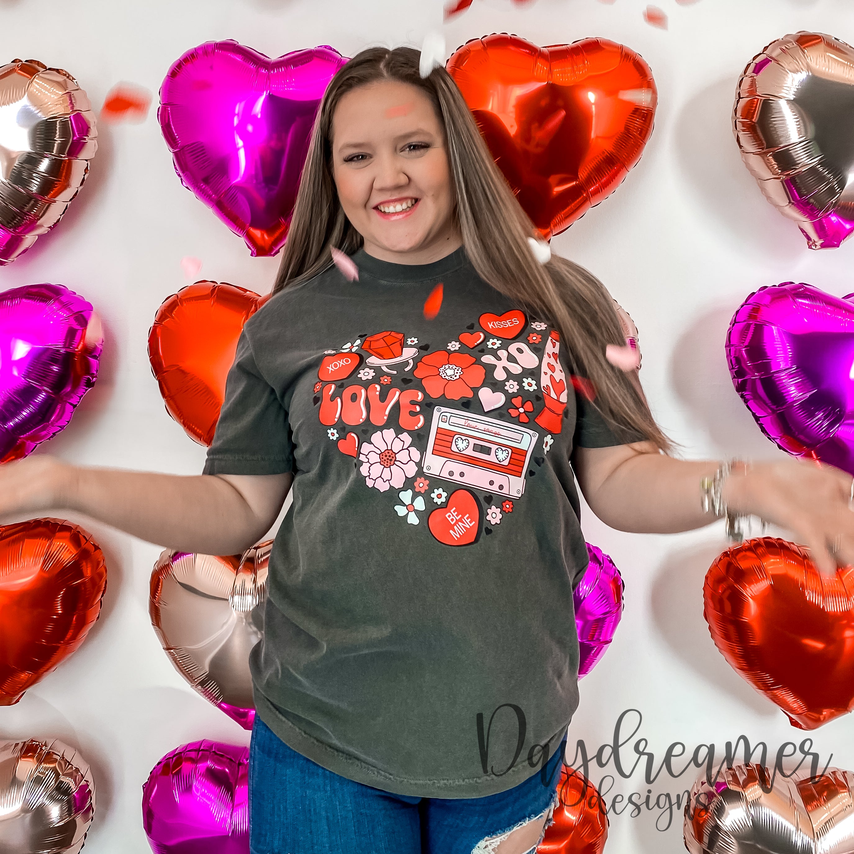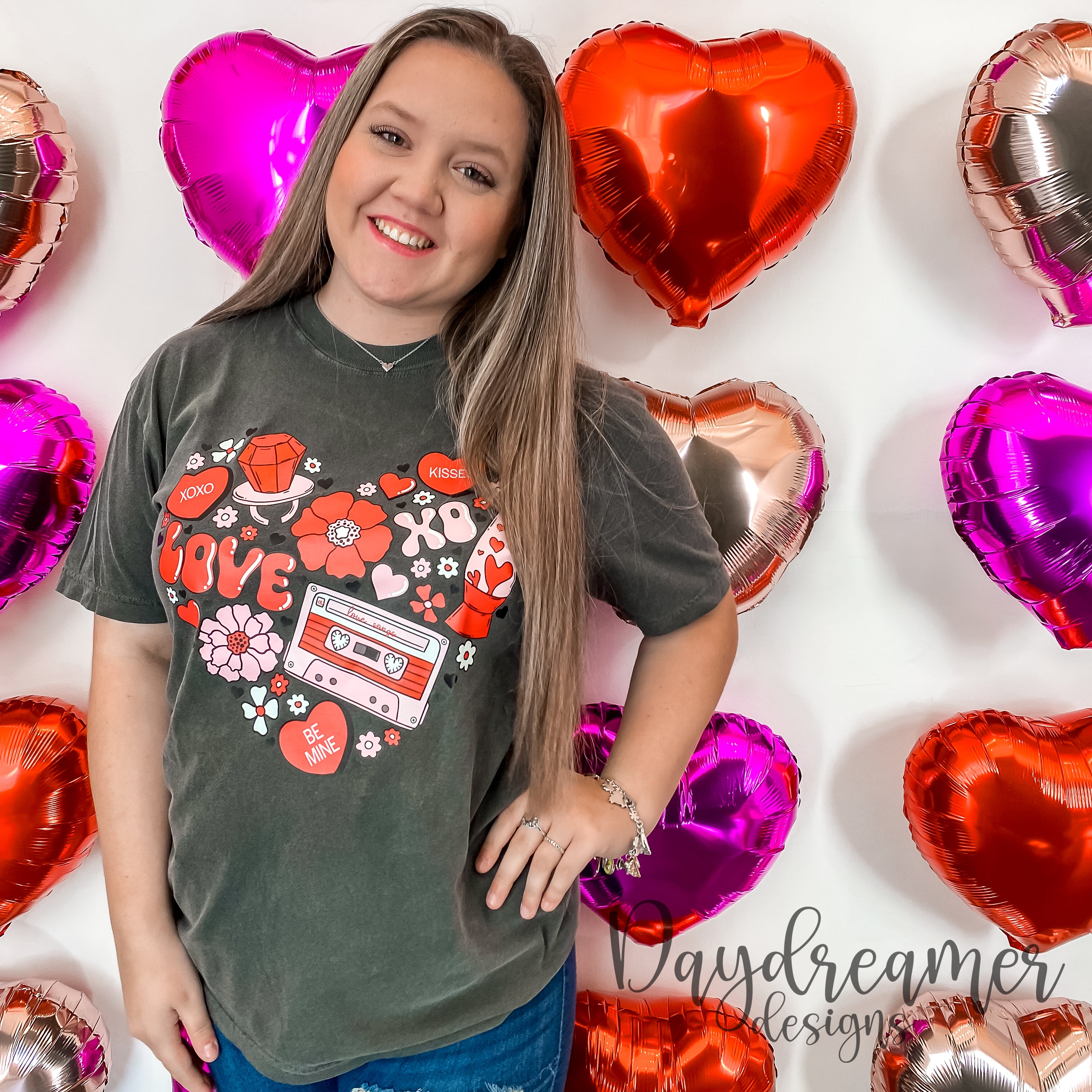 DTF (Direct to film) on a soft, poly/cotton, unisex tee. Tee brands and color shades may vary depending on availability. Size up for an oversized fit. Comfort Colors.
