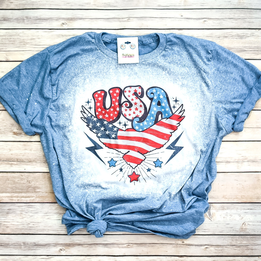 *Bleached tees are weather-dependent. We take advantage of every sunny minute! However, please note that rainy/cold/windy/overcast weather may delay production or produce more of a vintage look. Bleaching is a process of destressing and discoloring the tees, so no two will be the same. Bleached tees are washed before shipment.