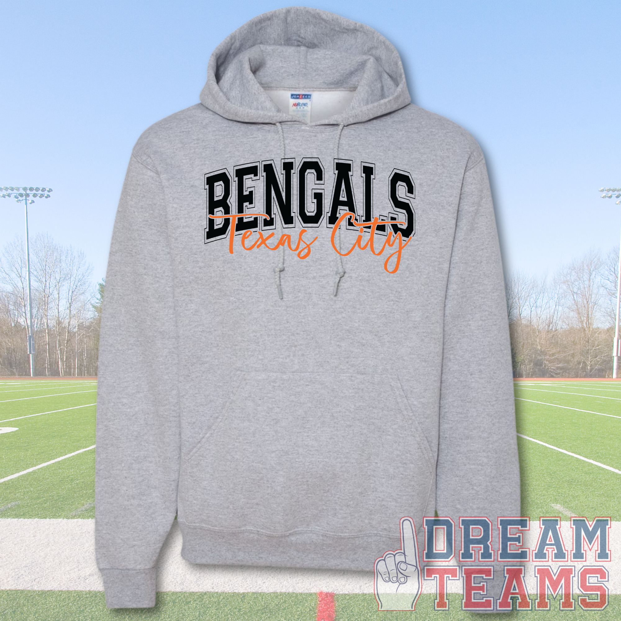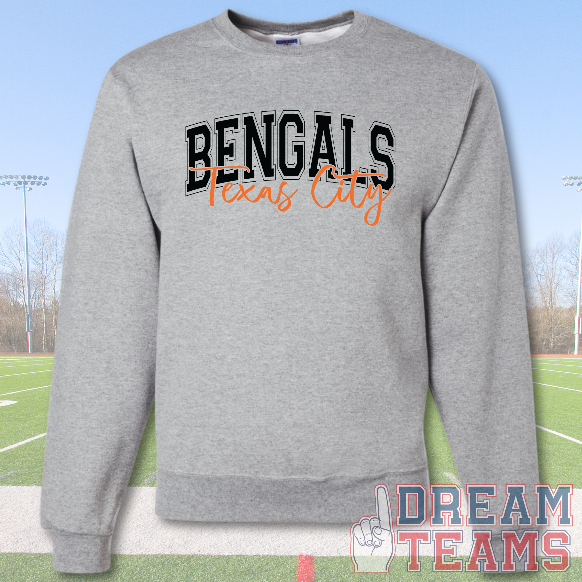 Unisex fit, true to size. Cotton-poly blend (Jerzees, Gildan, or Tultex).