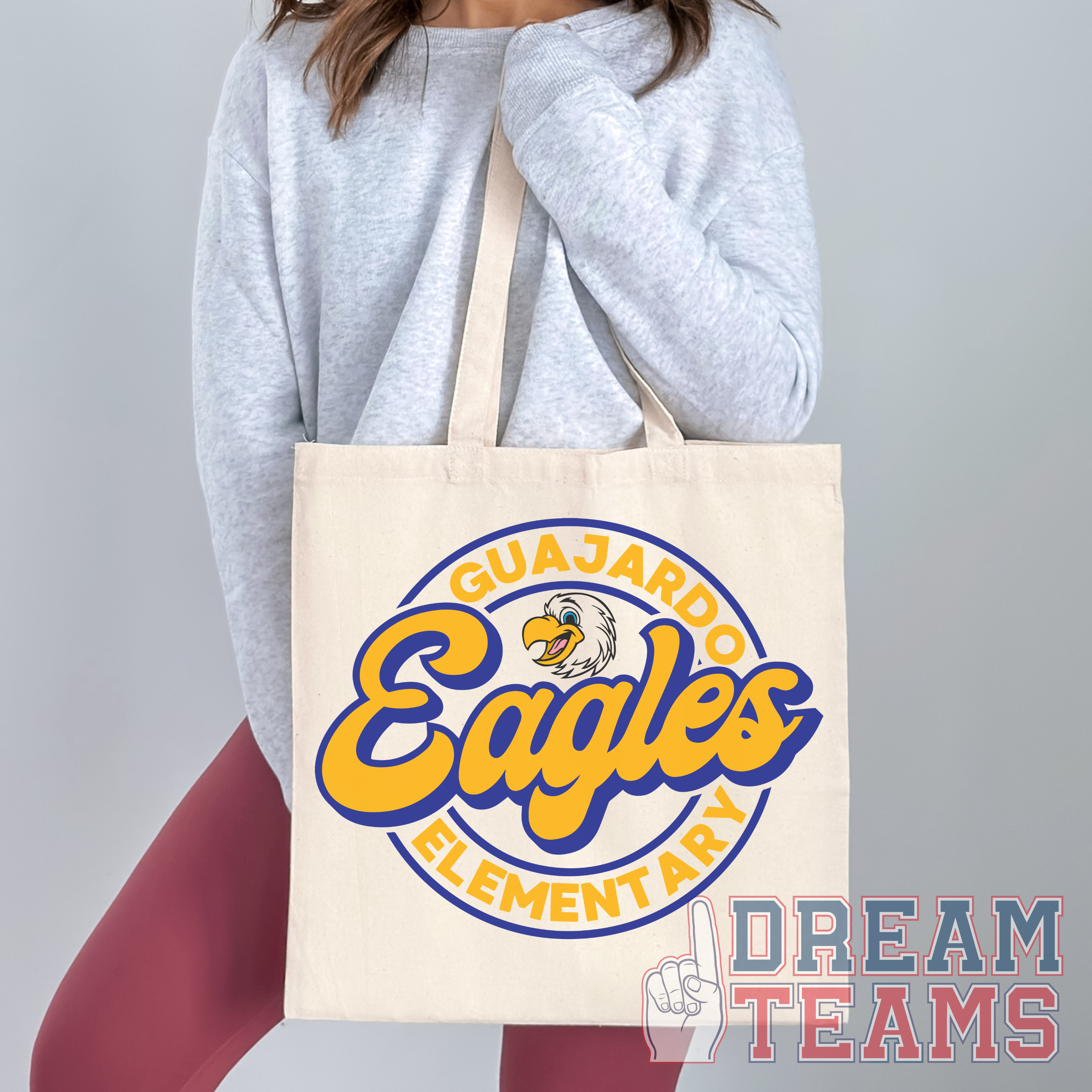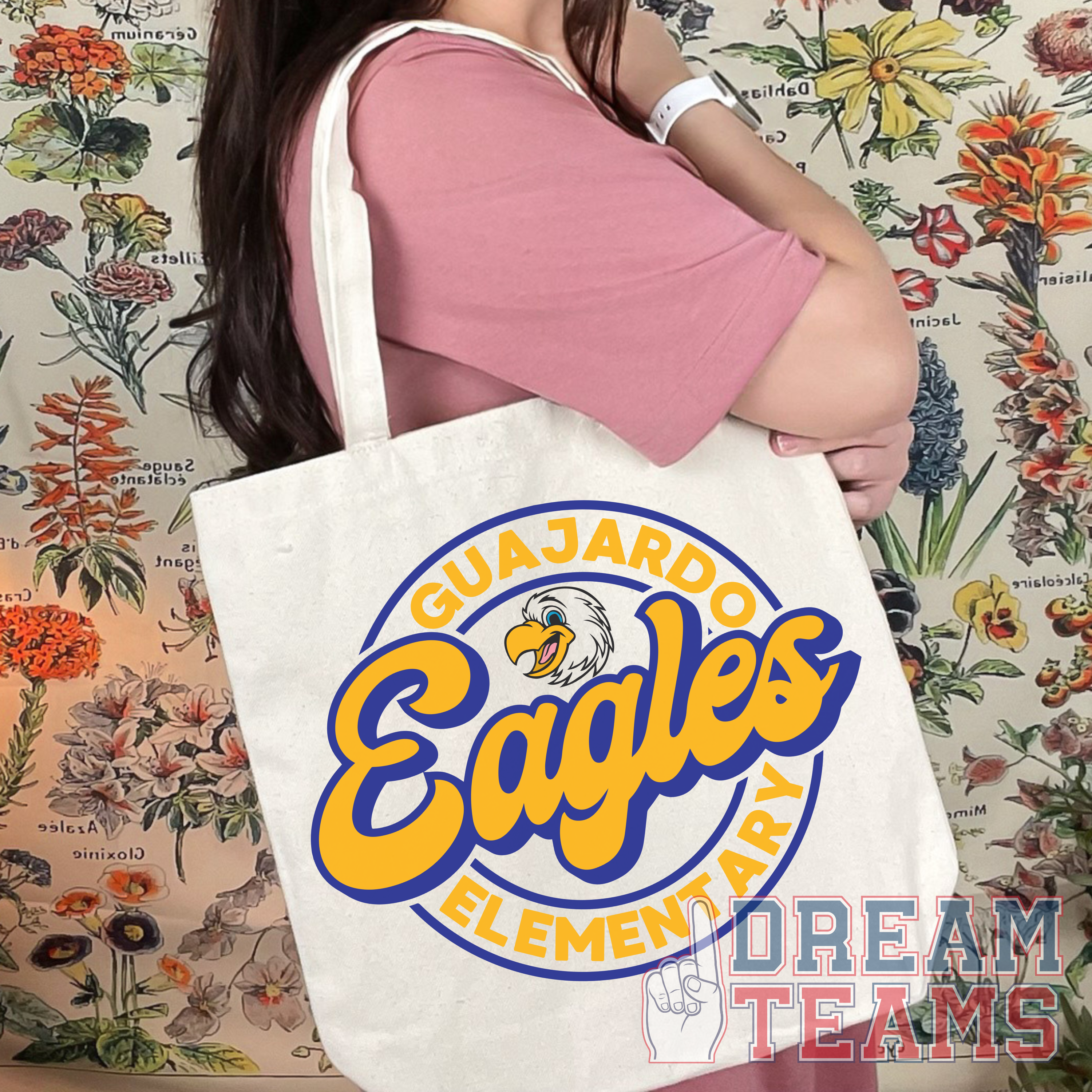Made from 100% natural cotton canvas. 23" handles with a 10.5" drop. The print is one-sided. Measurements: 15"W x 16"H