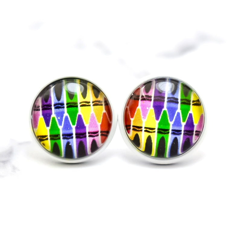 Shown are 12mm stud earrings. This is our most popular size for both adults and kids!