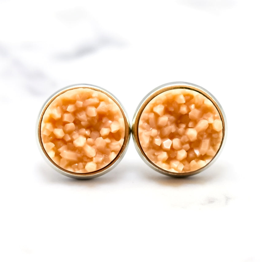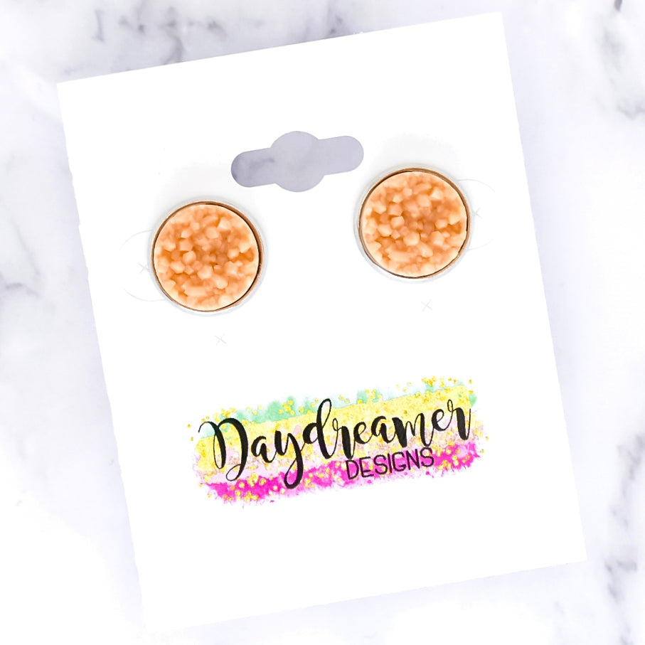 Shown are 12mm stud earrings. This is our most popular size for both adults and kids!