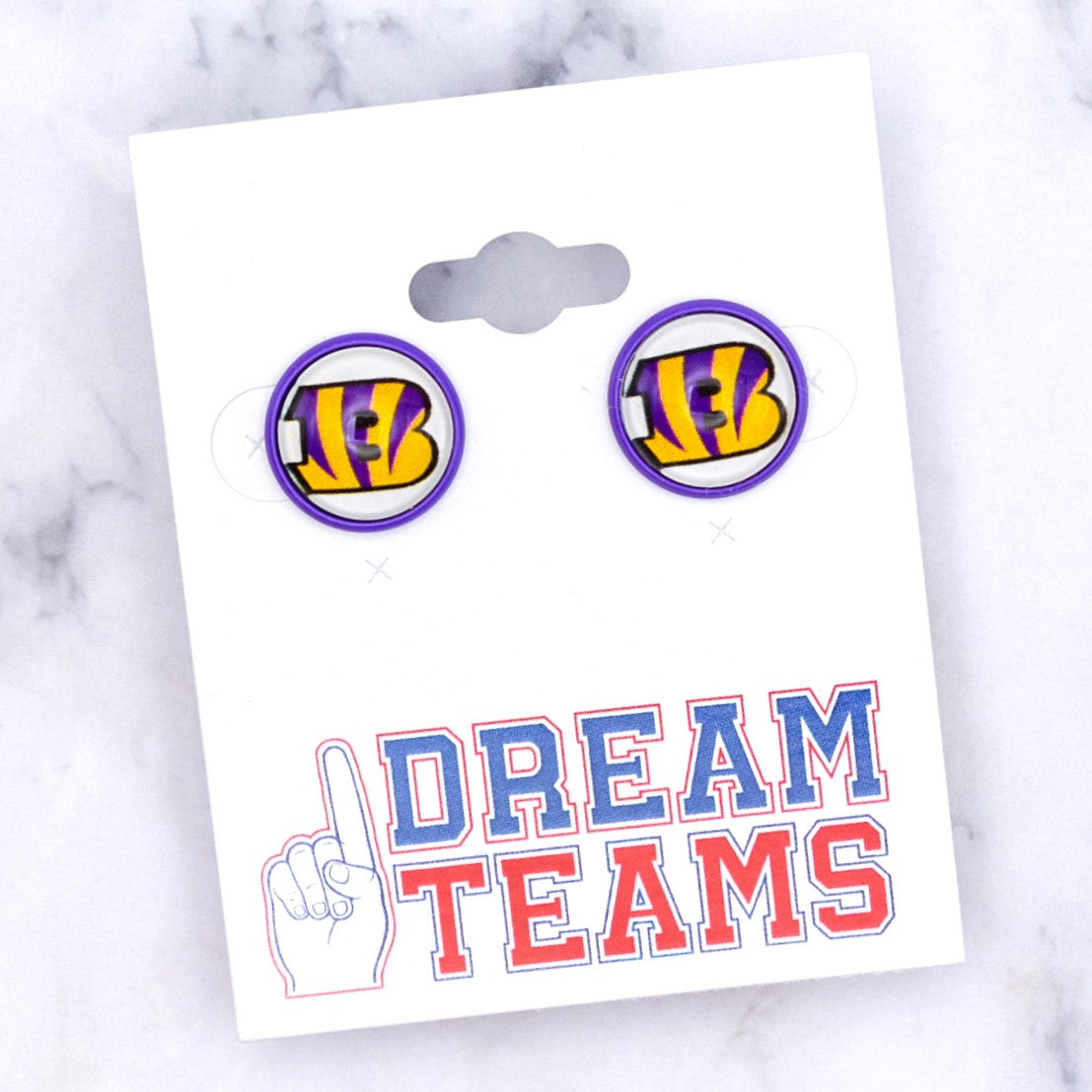 Shown are 12mm stud earrings. This is our most popular size for both adults and kids!