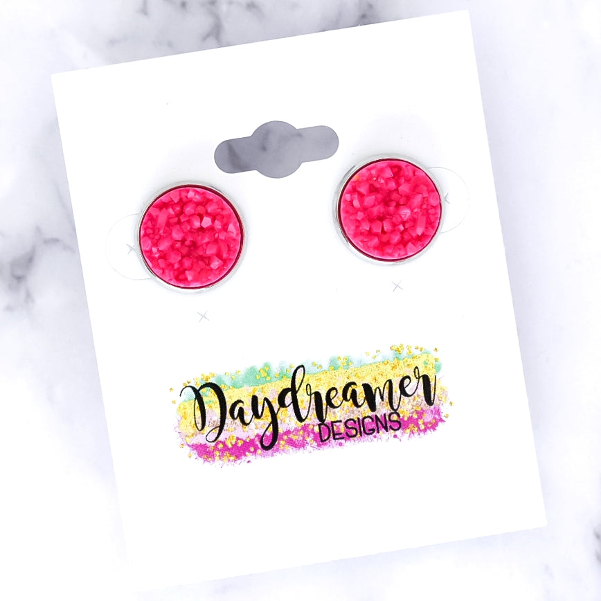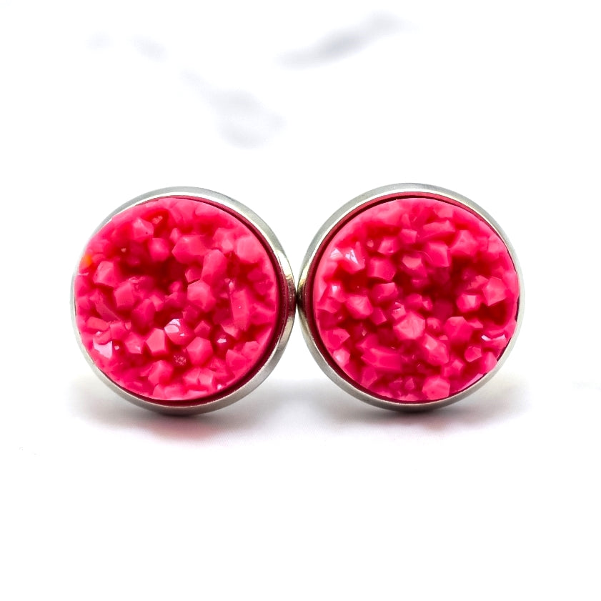 Shown are 12mm stud earrings. This is our most popular size for both adults and kids!