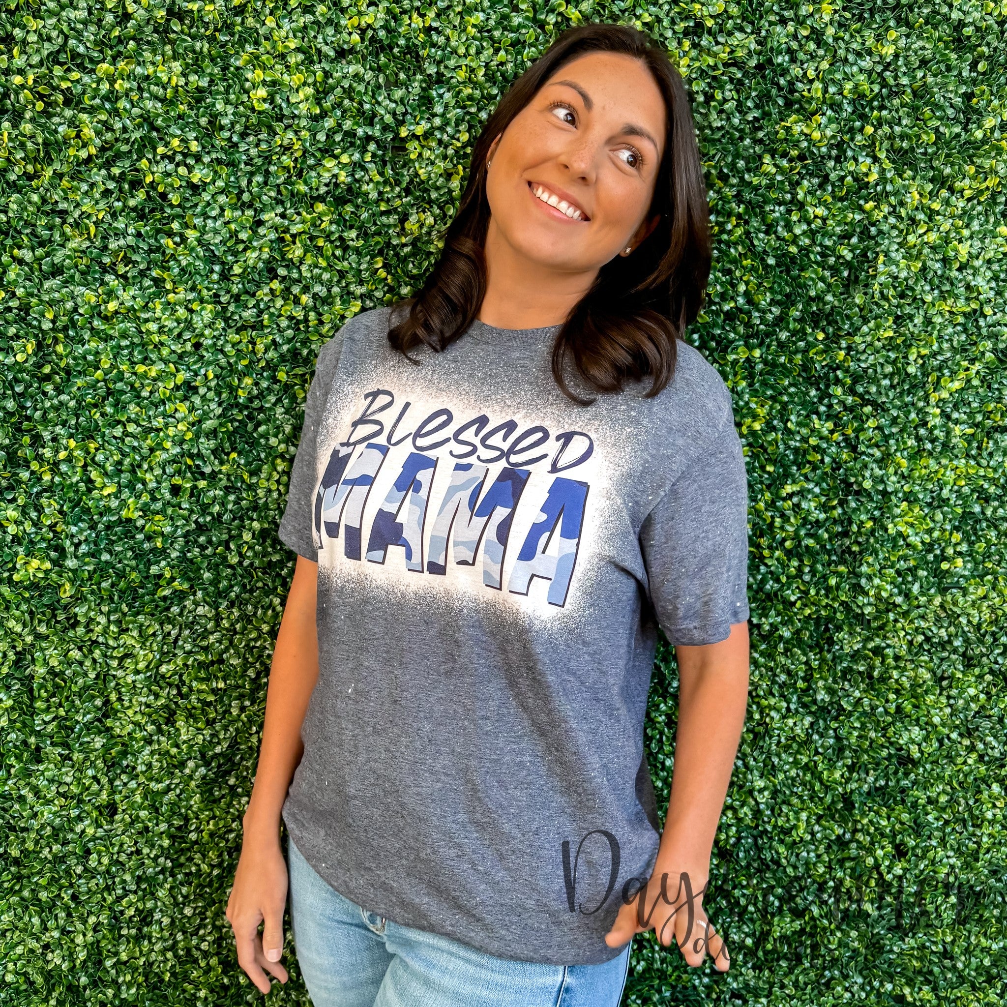 Blessed Mama Navy Bleached Tee