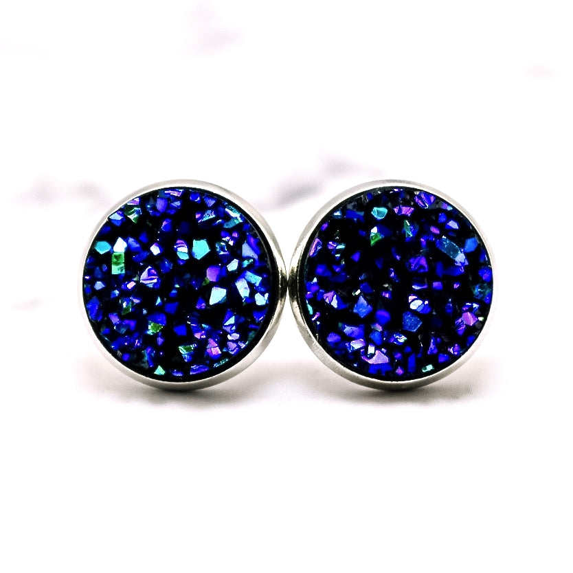 Blue Purple Metallic Druzy Stud Earrings
