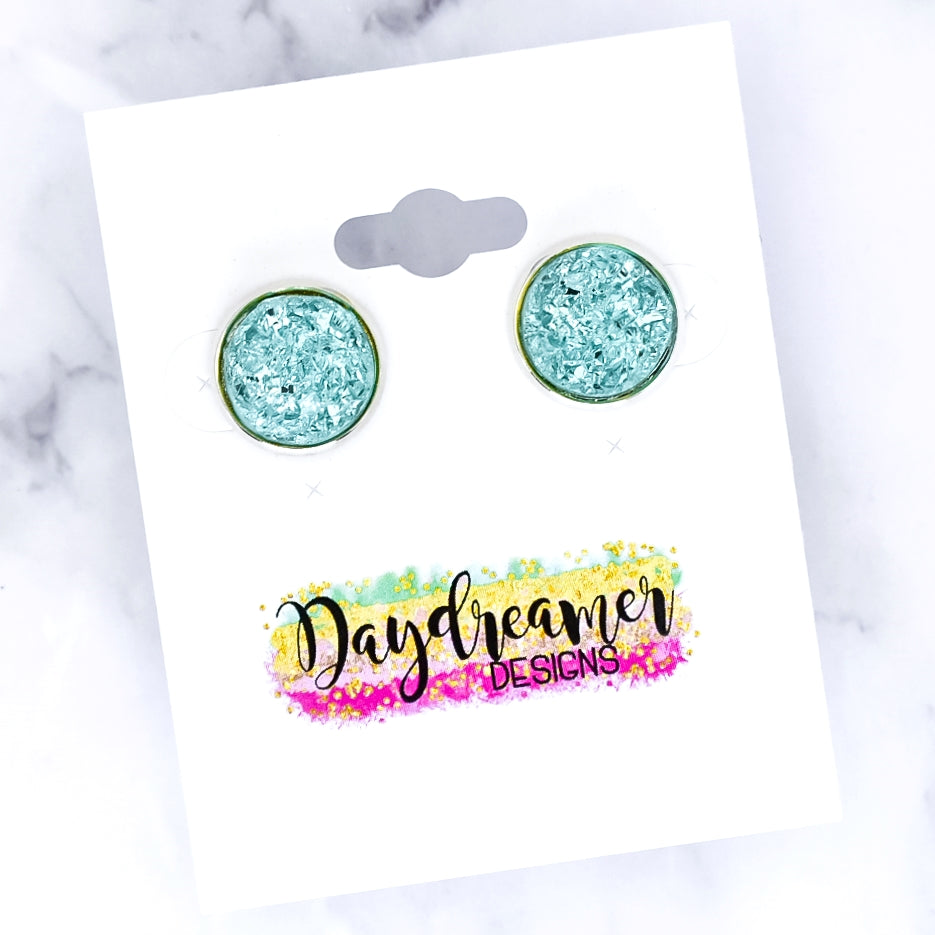 Shown are 12mm stud earrings. This is our most popular size for both adults and kids!