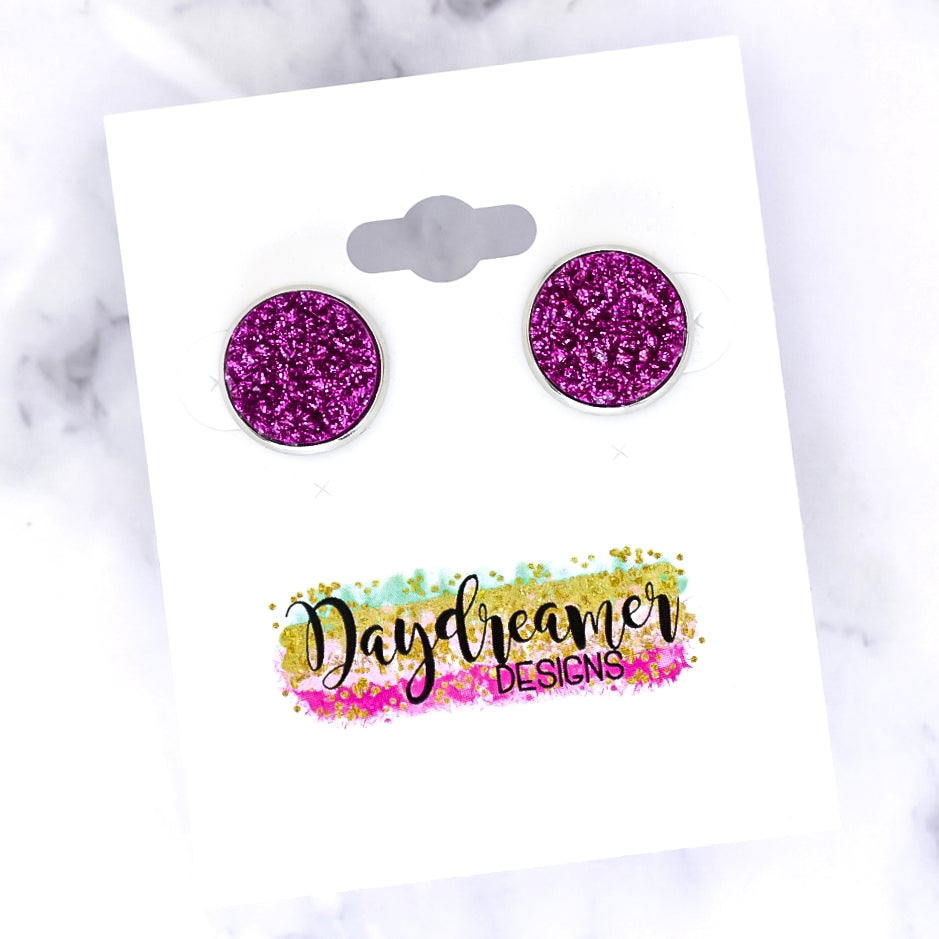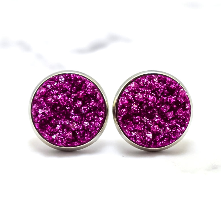 Shown are 12mm stud earrings. This is our most popular size for both adults and kids!