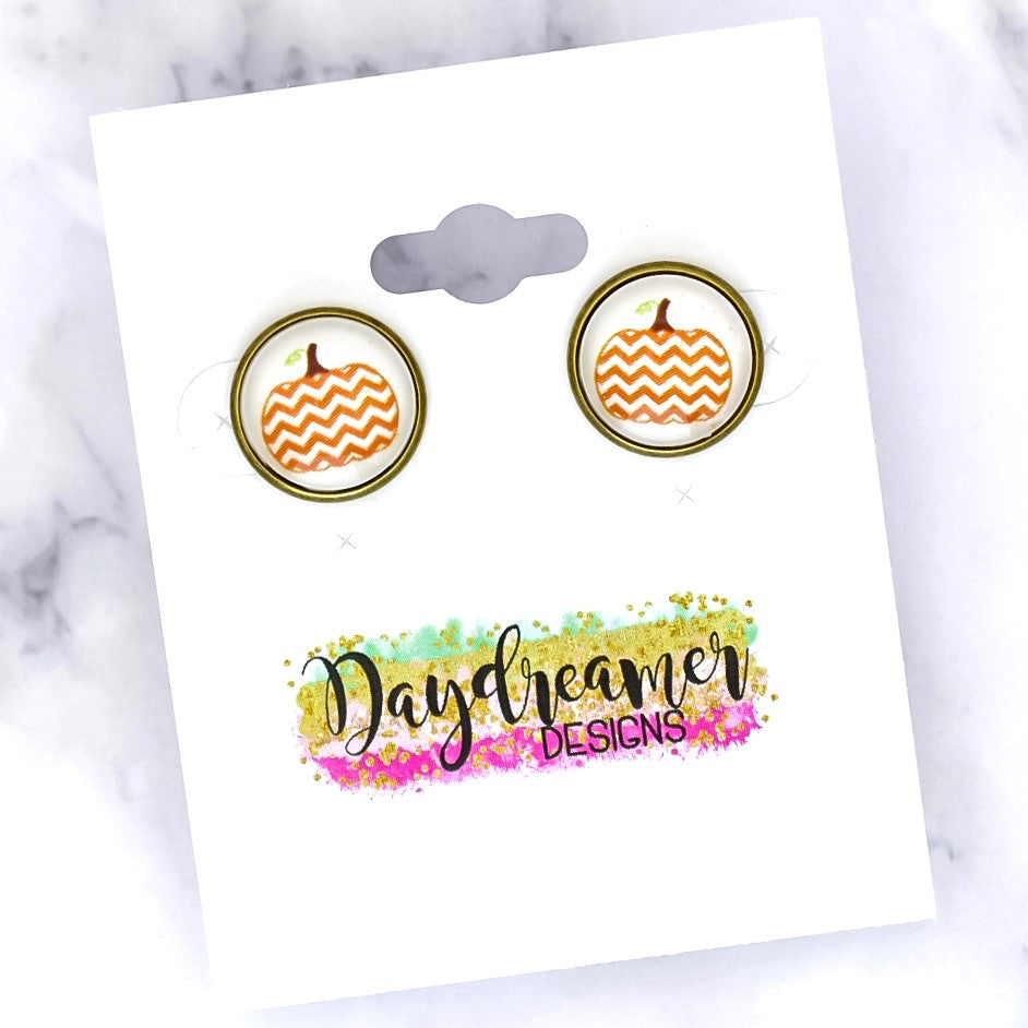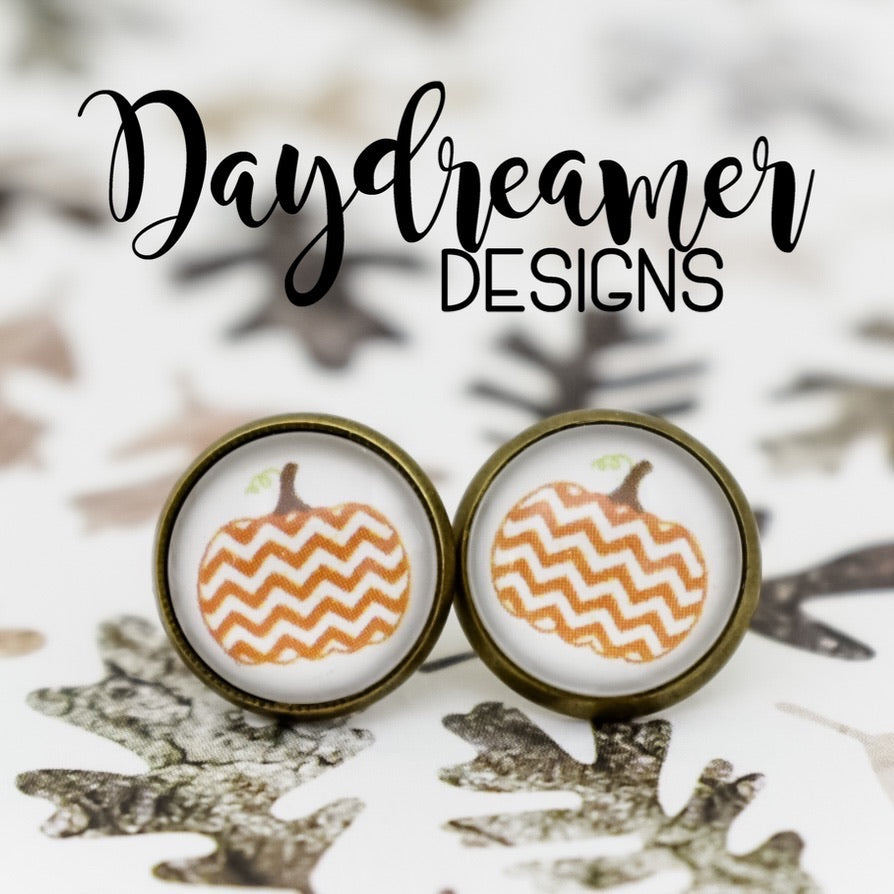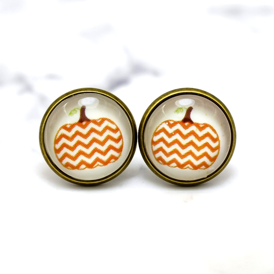 Chevron Pumpkin Photo Stud Earrings
