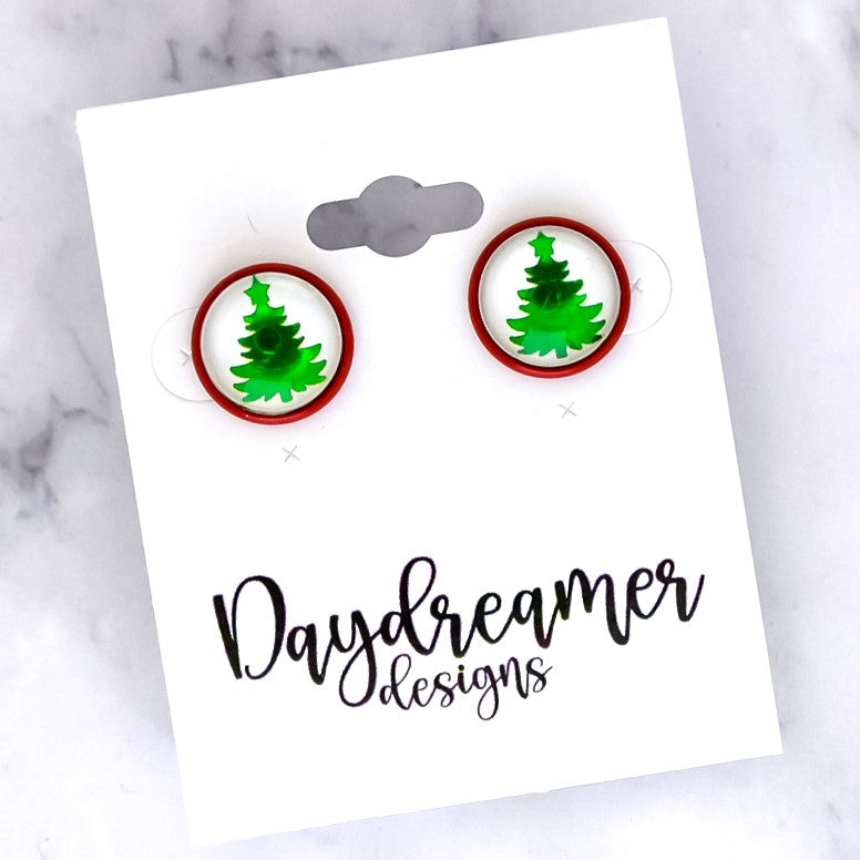 Shown are 12mm stud earrings. This is our most popular size for both adults and kids!