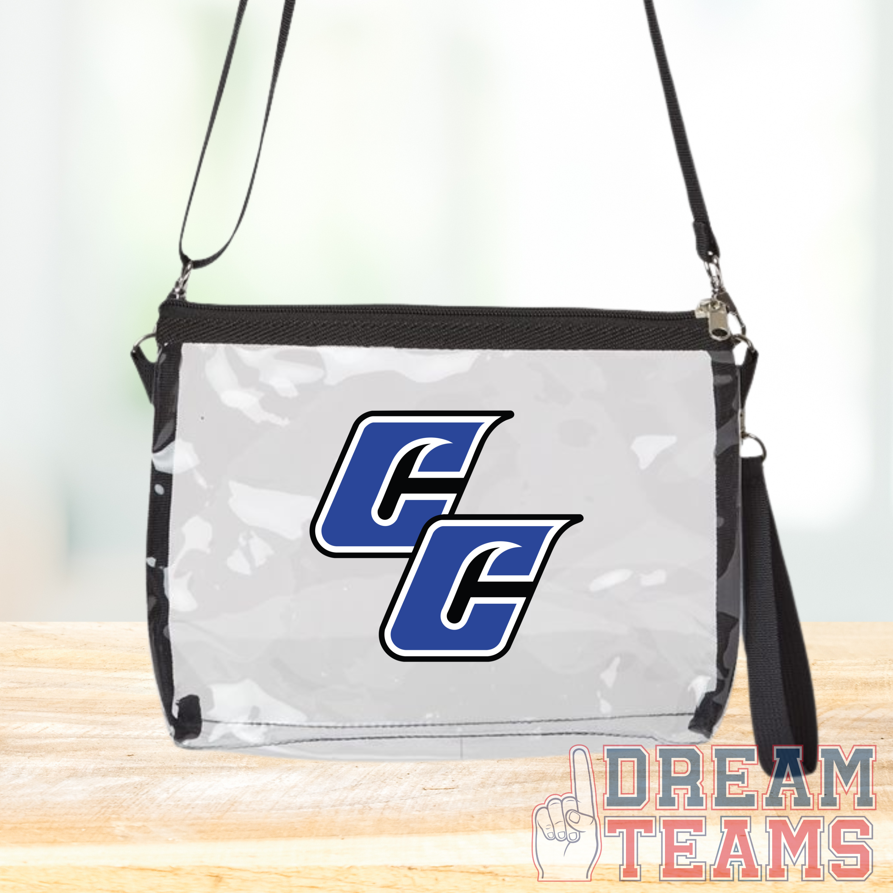 Made from high-quality, 100% transparent PVC, which makes them stadium-approved. Straps are removable and extend up to 53". Measurements: 10.5" W x 7" H x 1.25" D.