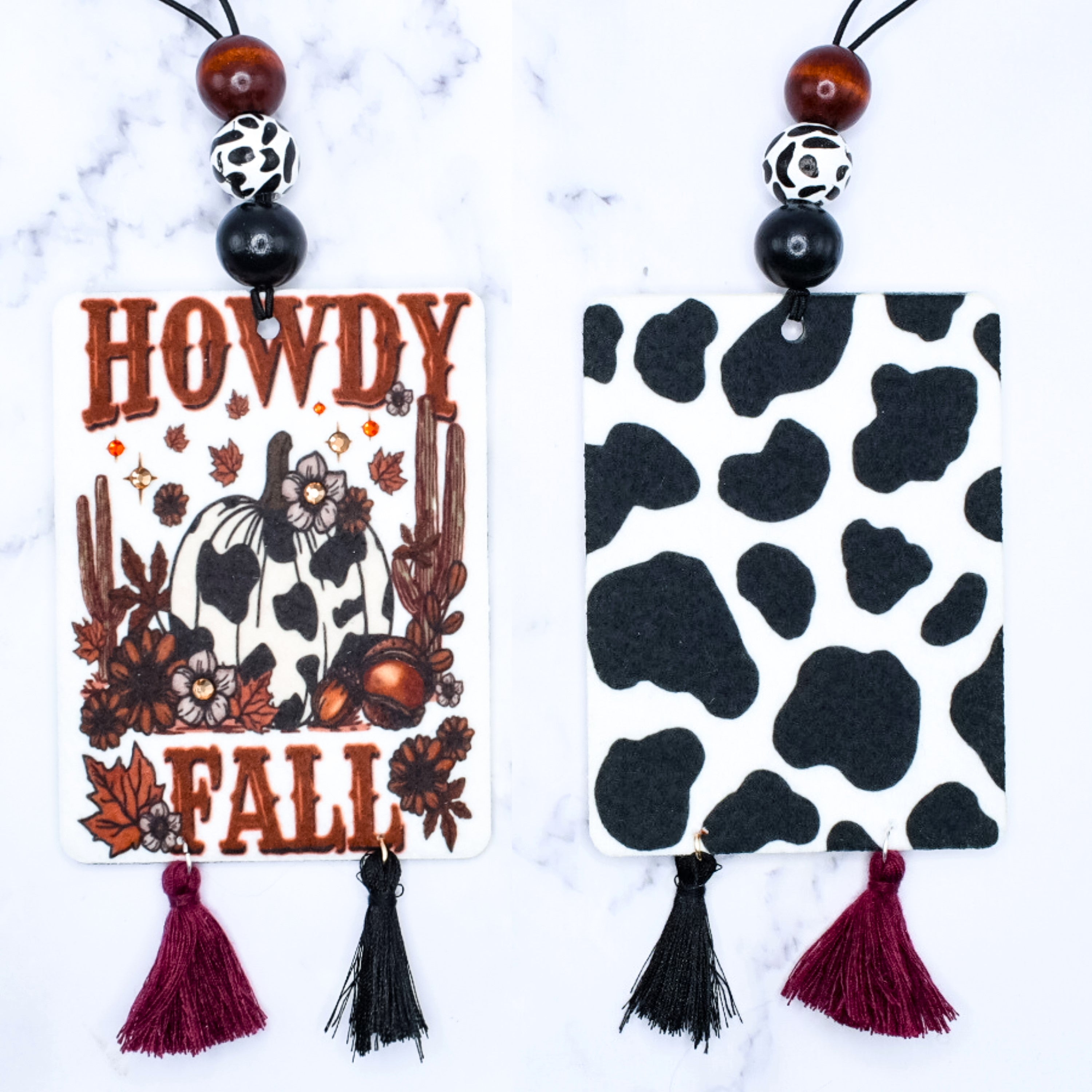 Our felt freshies are full of detail with a 2 sided print and an option for beads and tassels. Hang them in your car, office, or any small space. Once they fade, you can re-scent them with your favorite perfume, essential oil, etc. by applying them to the sides and allowing the oil/liquid to soak in. Bead, tassel, and string color may vary.