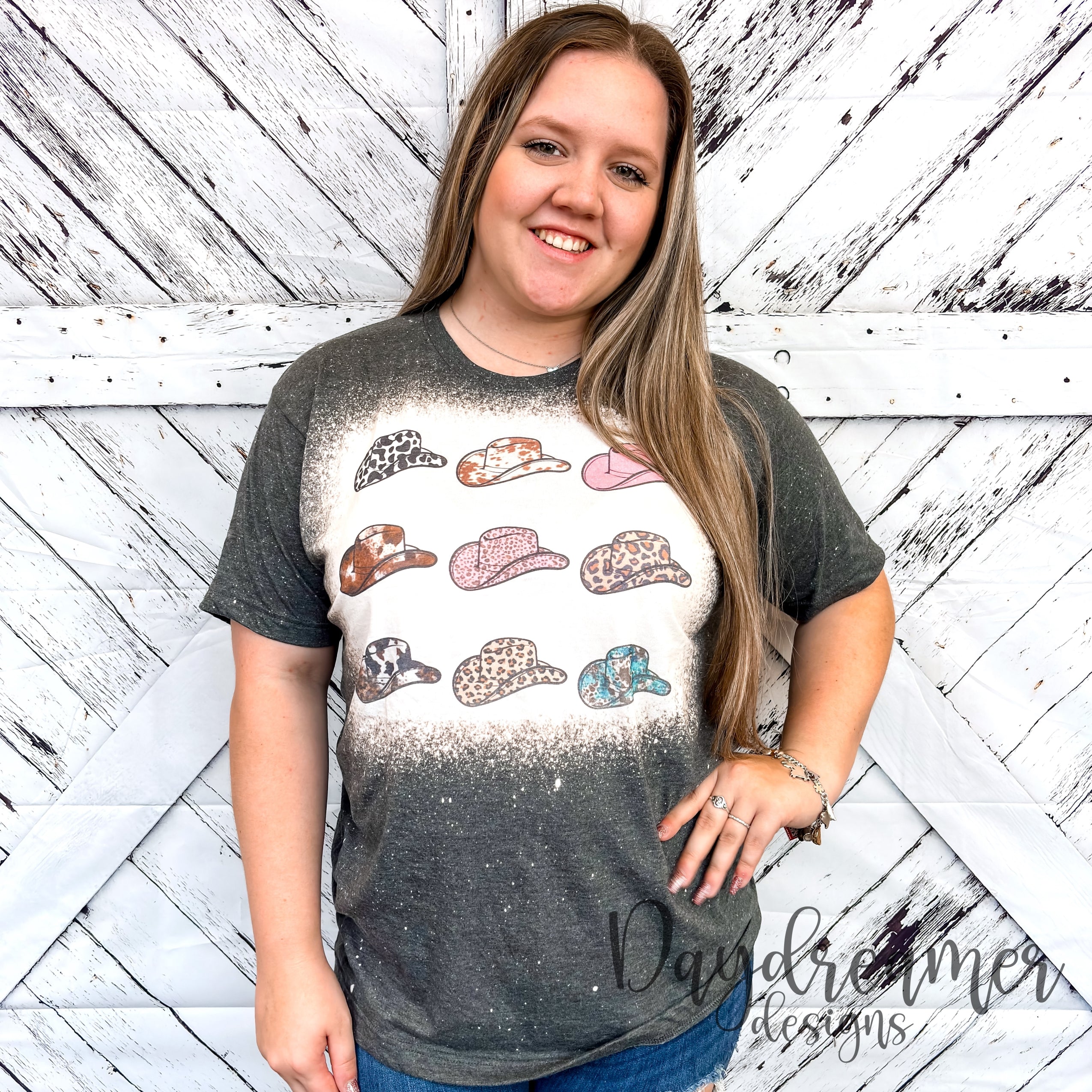 *Bleached tees are weather-dependent. We take advantage of every sunny minute! However, please note that rainy/cold/windy/overcast weather may delay production or produce more of a vintage look. Bleaching is a process of destressing and discoloring the tees, so no two will be the same. Bleached tees are washed before shipment.