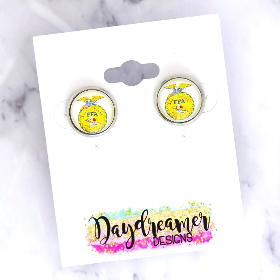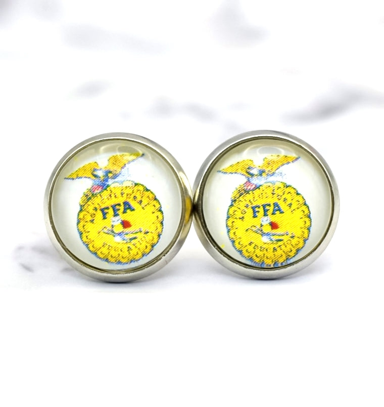 Shown are 12mm stud earrings. This is our most popular size for both adults and kids!