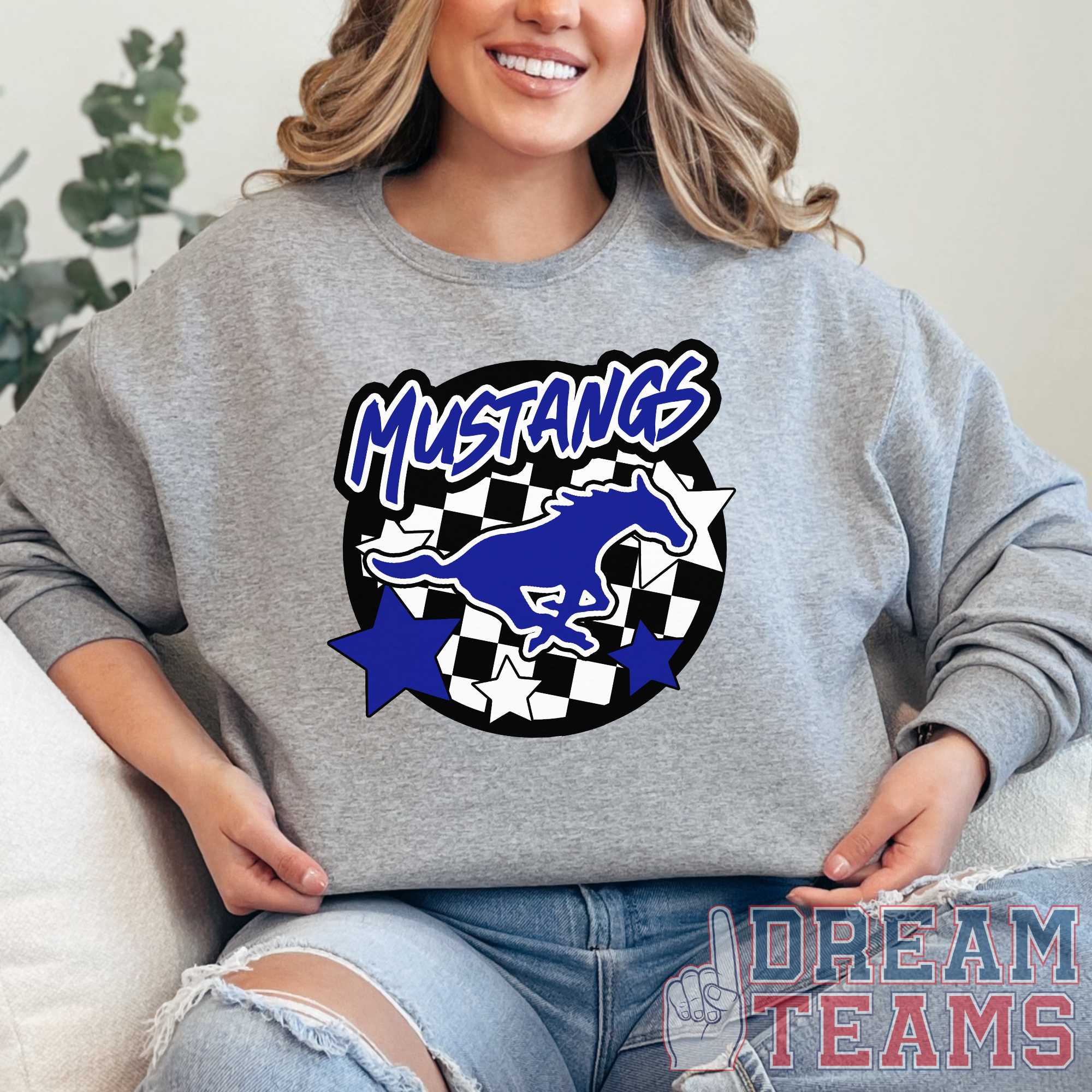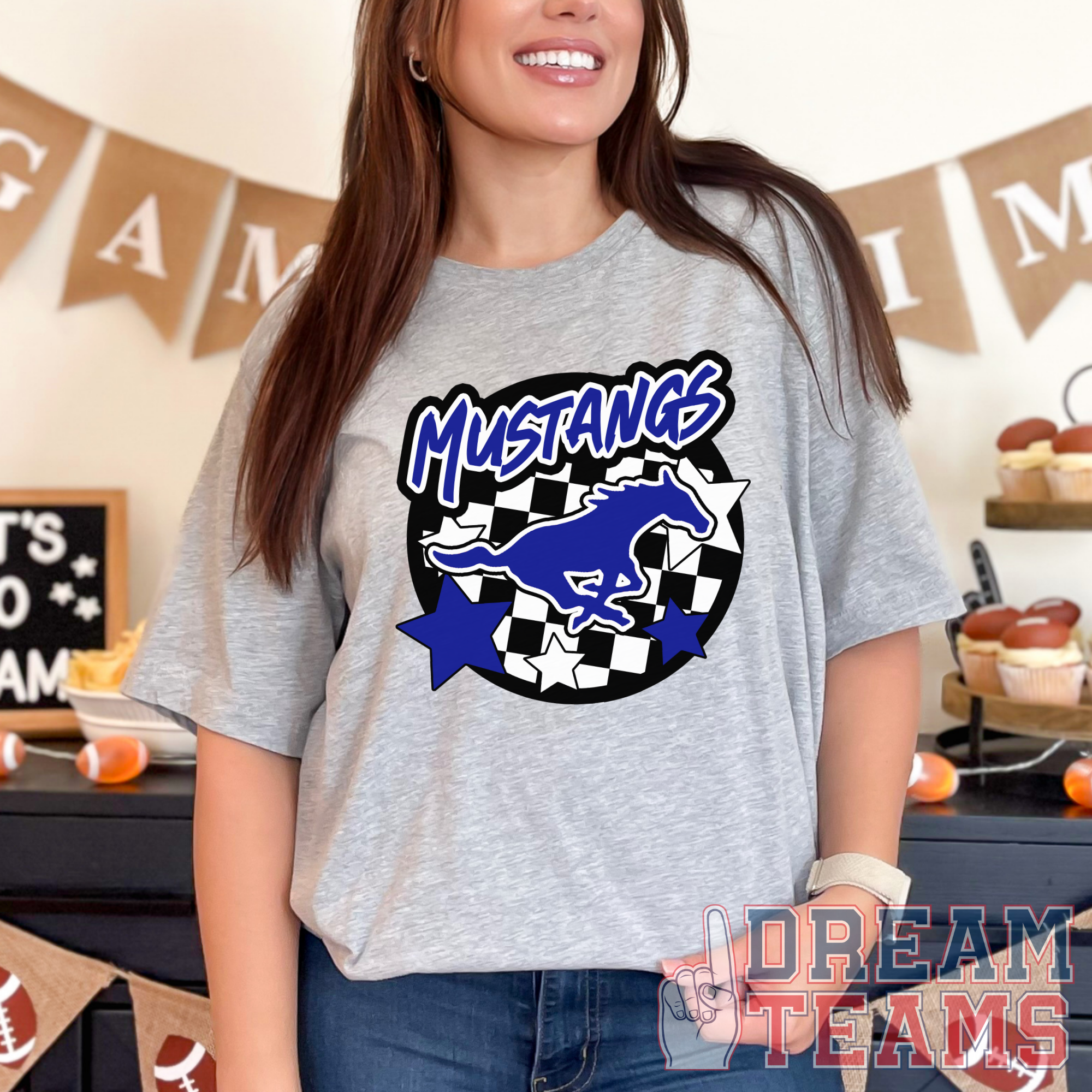 Friendswood Mustangs - Checkered Stars - Grey