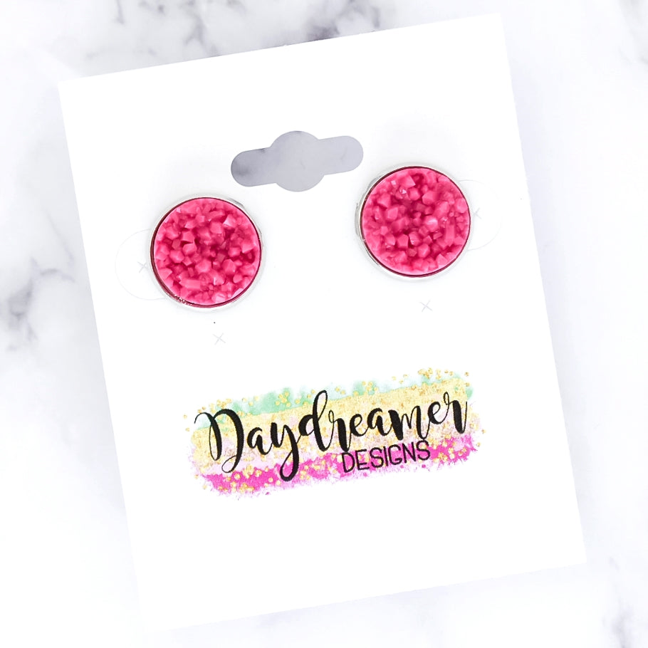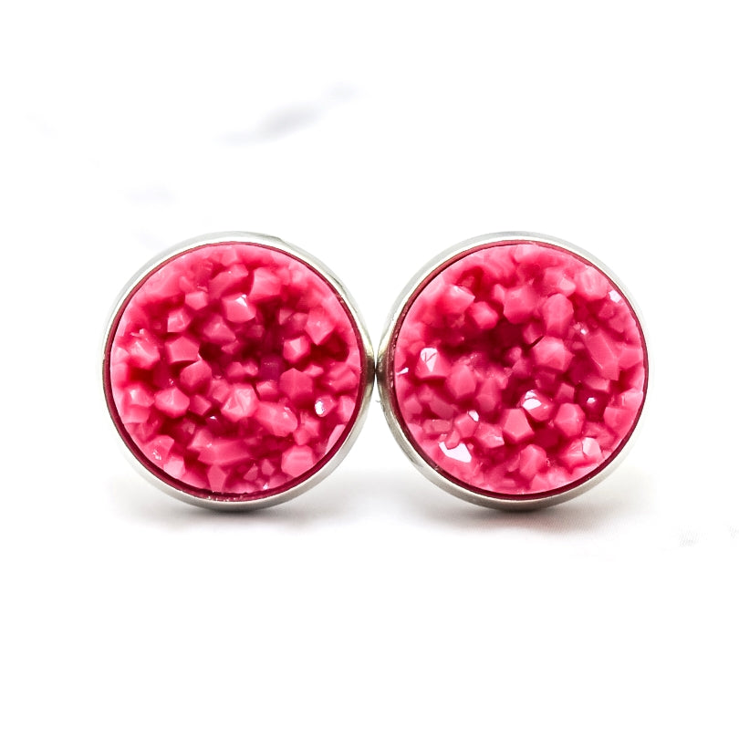 Shown are 12mm stud earrings. This is our most popular size for both adults and kids!