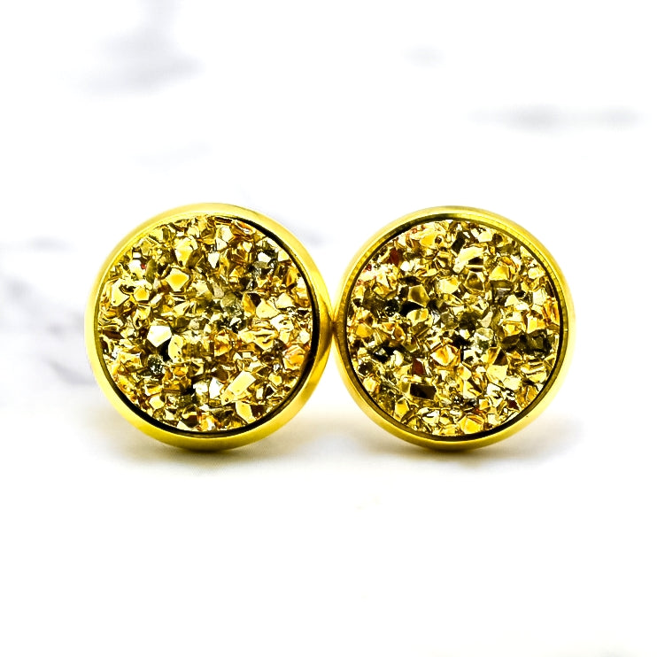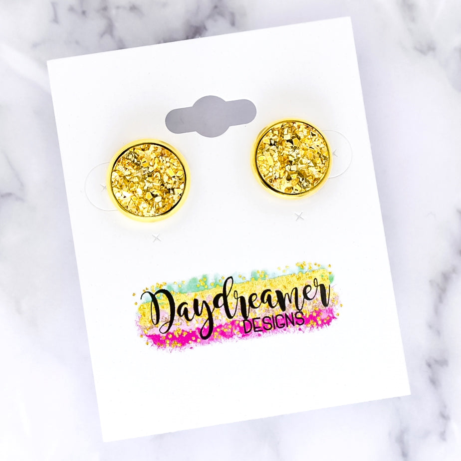 Shown are 12mm stud earrings. This is our most popular size for both adults and kids!