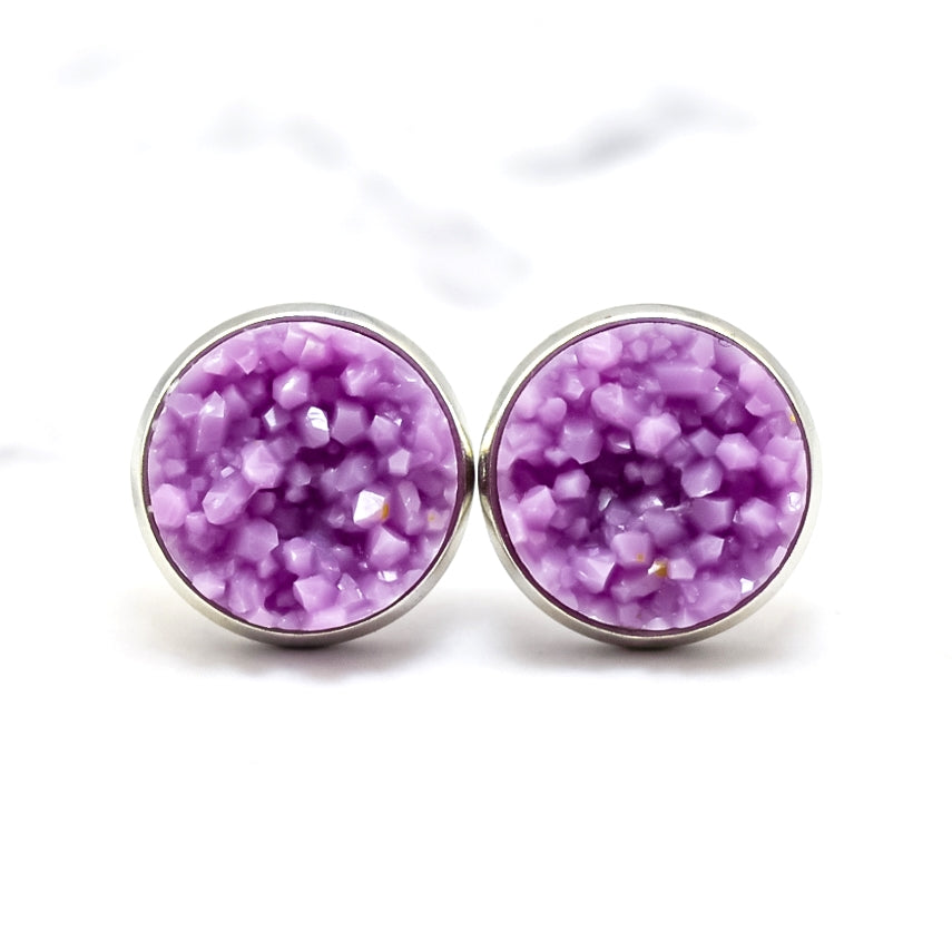 Shown are 12mm stud earrings. This is our most popular size for both adults and kids!