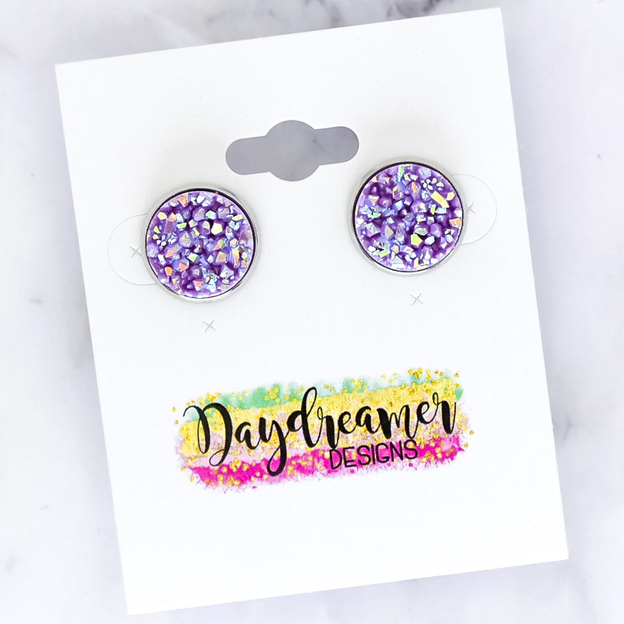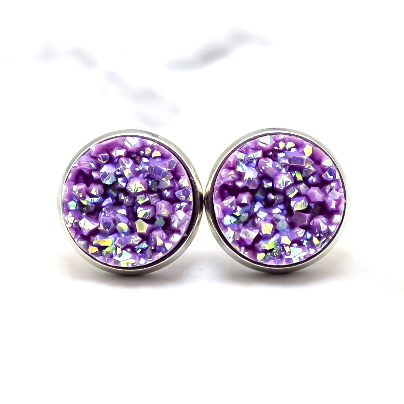 Shown are 12mm stud earrings. This is our most popular size for both adults and kids!