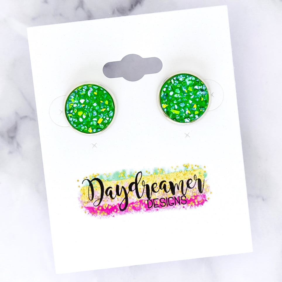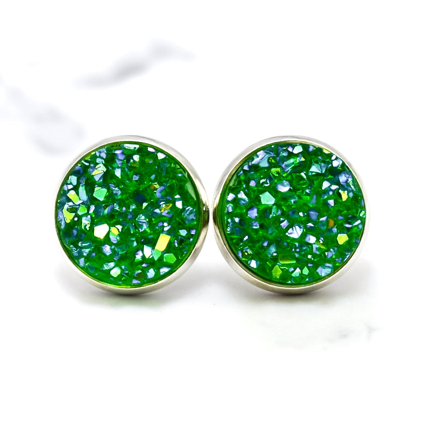 Green AB Druzy Stud Earrings