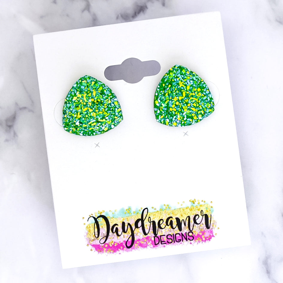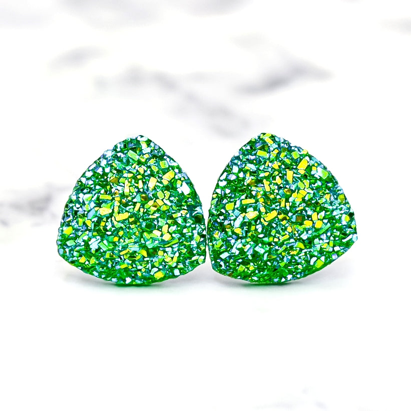 Green AB Triangle Druzy Stud Earrings