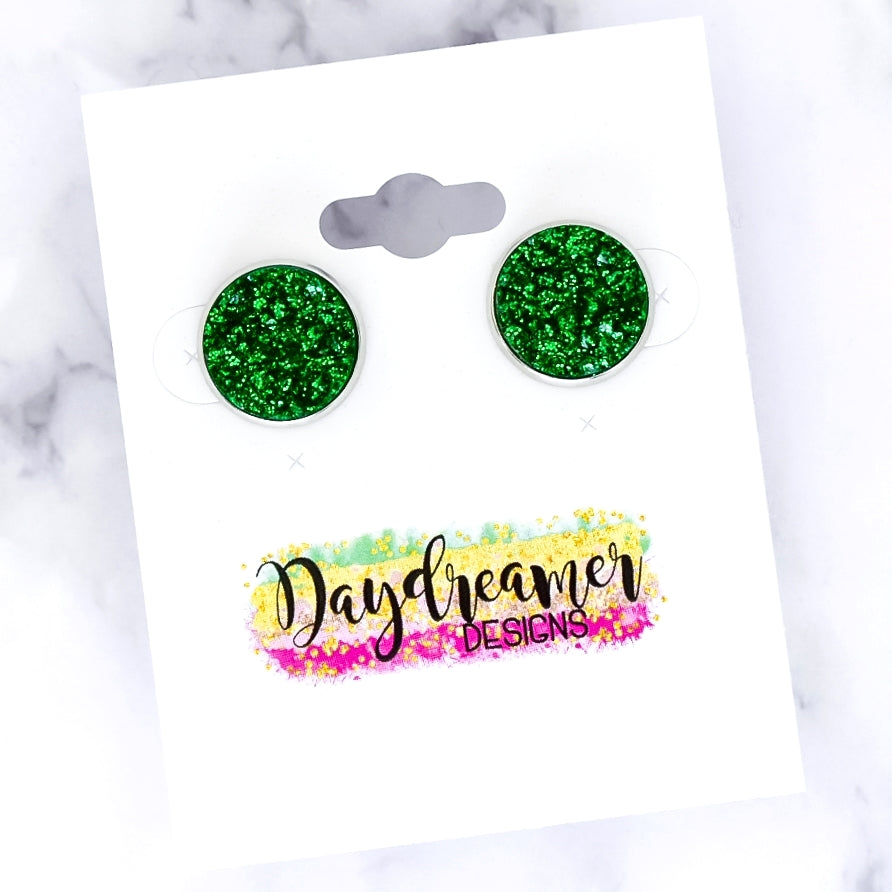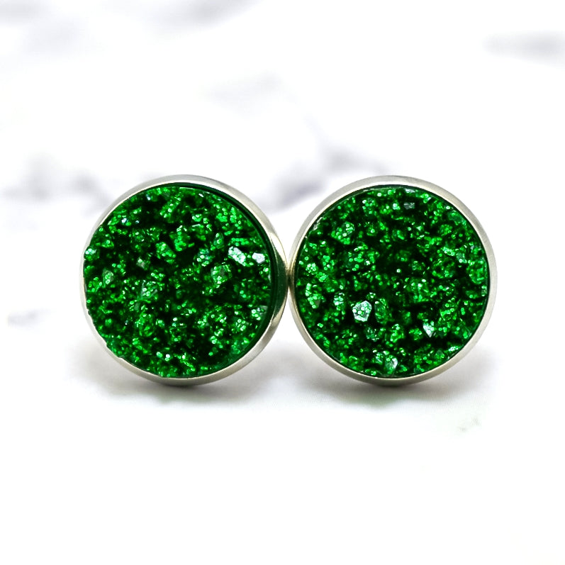 Shown are 12mm stud earrings. This is our most popular size for both adults and kids!