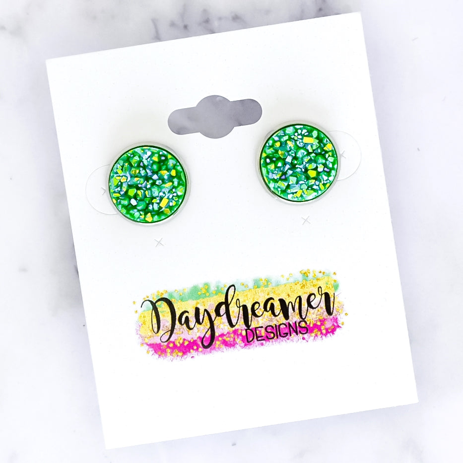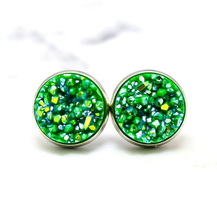 Green Sparkle Druzy Stud Earrings