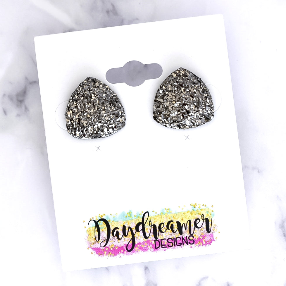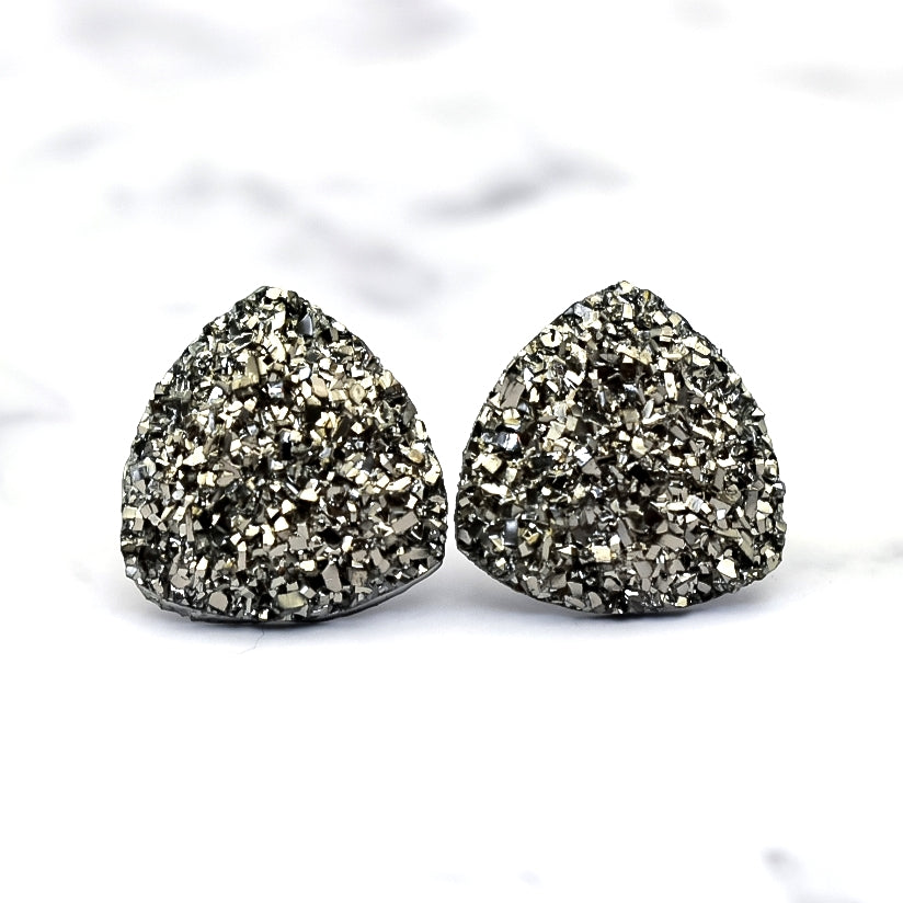 Gun Metal Metallic Triangle Druzy Stud Earrings