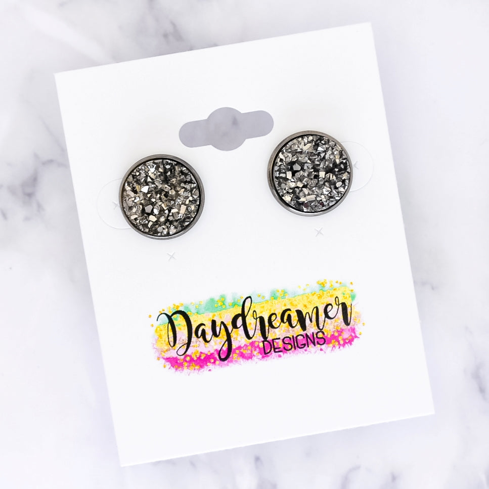 Shown are 12mm stud earrings. This is our most popular size for both adults and kids!