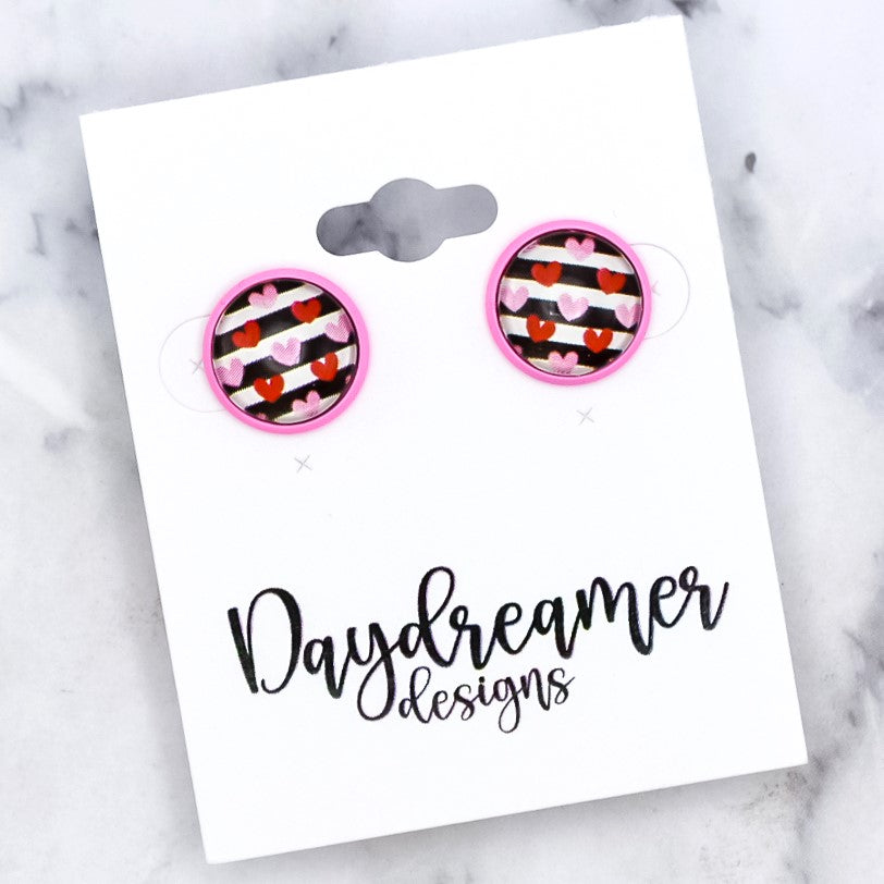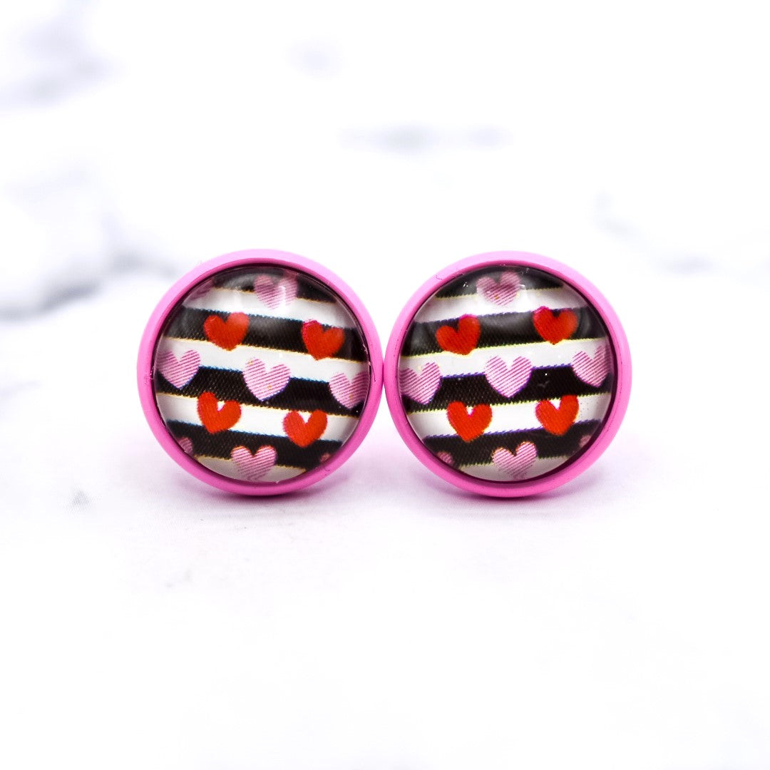 Shown are 12mm stud earrings. This is our most popular size for both adults and kids!