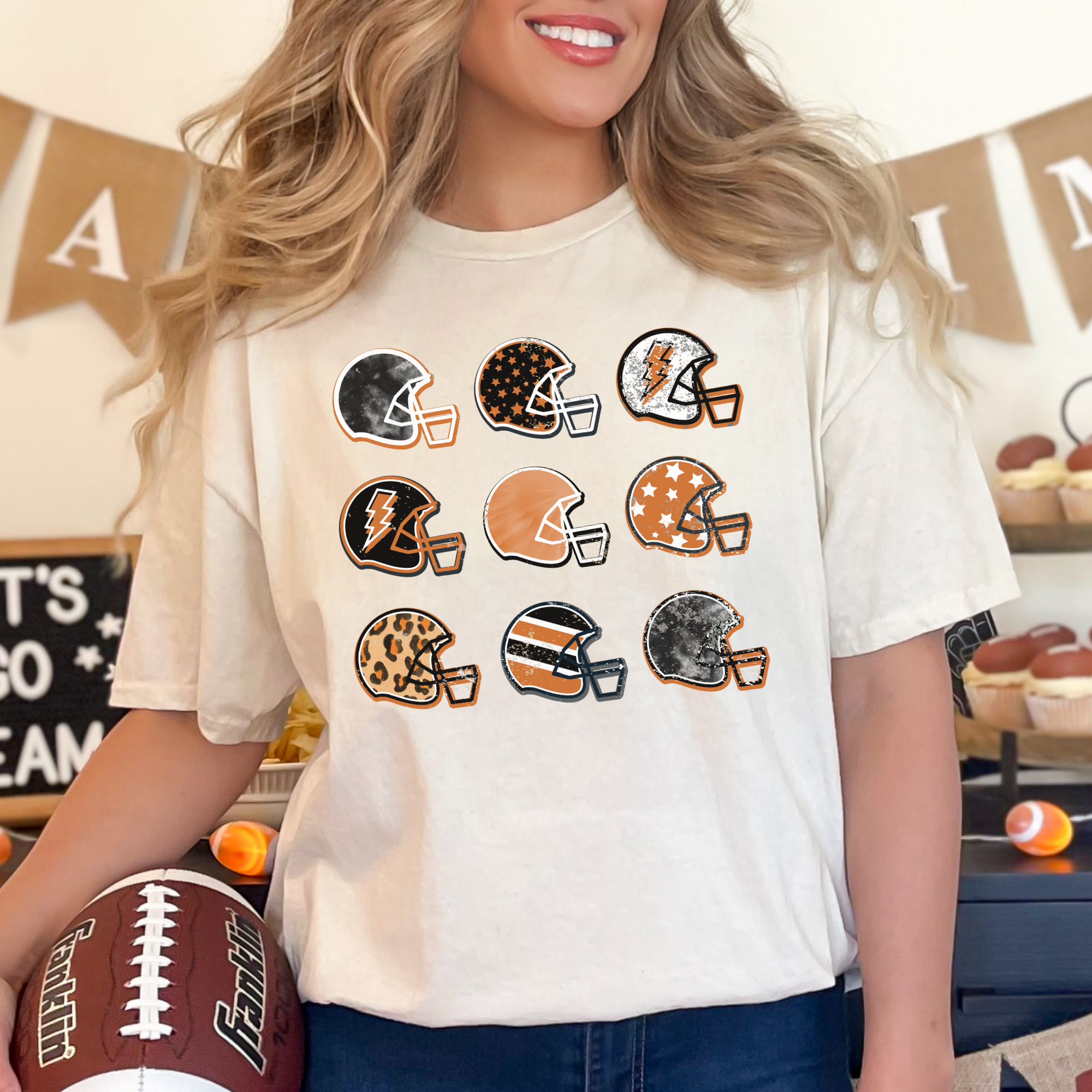 Football Helmets Collage - Burnt Orange Tee