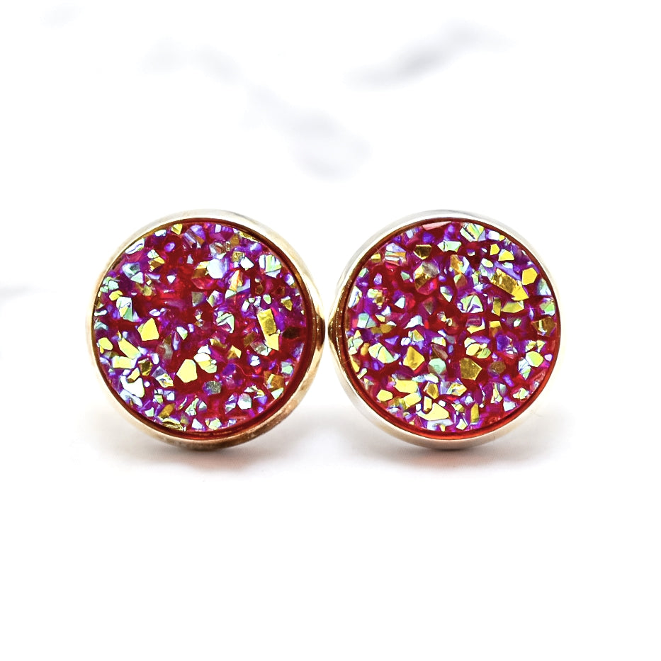 Hibiscus AB Druzy Stud Earrings
