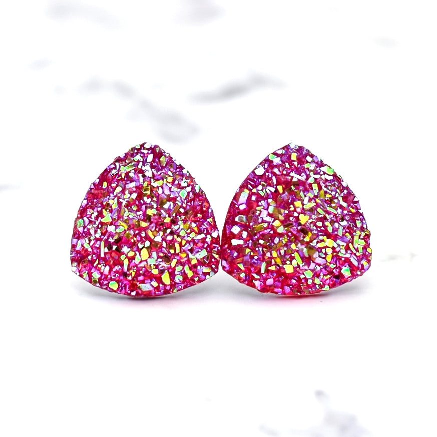 The setting refers to the metal part of the earring. Posts are centered on the backs of each earring. Settings are nickel and lead-free.