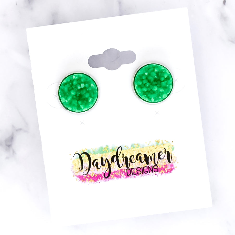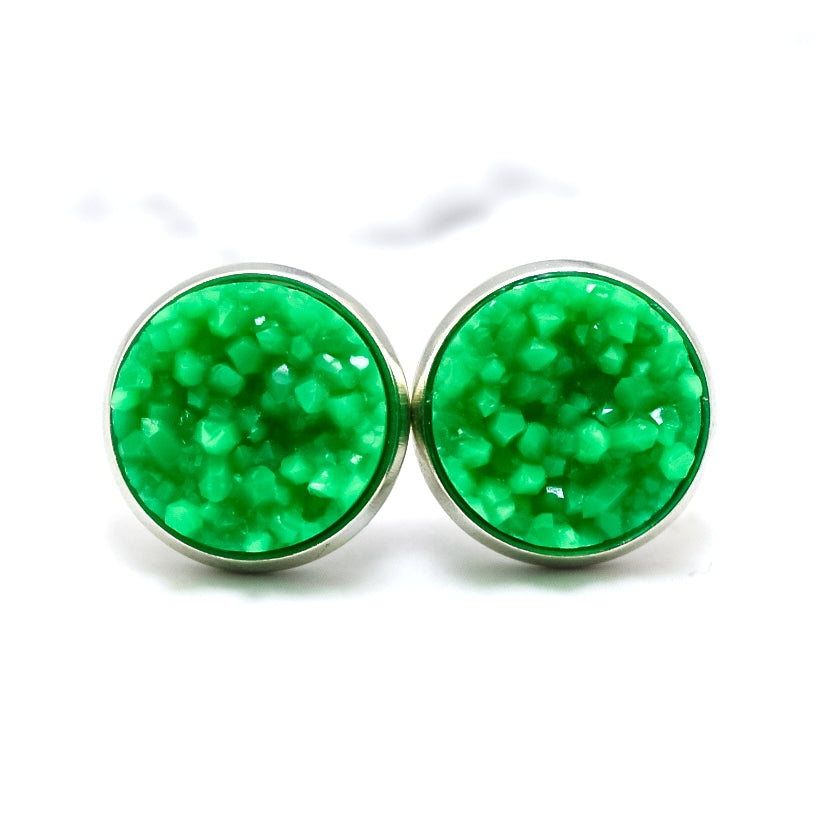 Kelly Green Druzy Stud Earrings