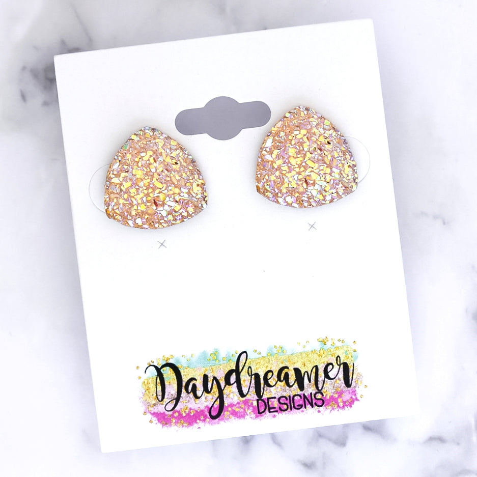 The setting refers to the metal part of the earring. Posts are centered on the backs of each earring. Settings are nickel and lead-free.