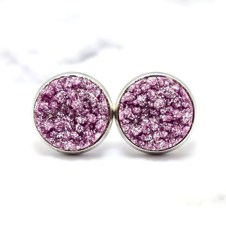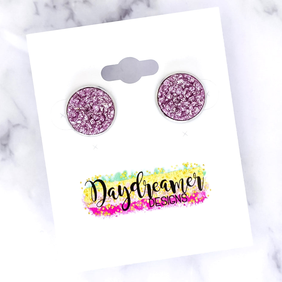 Shown are 12mm stud earrings. This is our most popular size for both adults and kids!