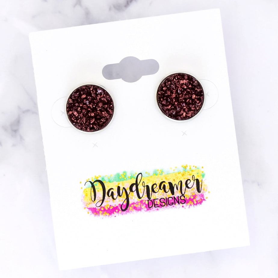 Shown are 12mm stud earrings. This is our most popular size for both adults and kids!