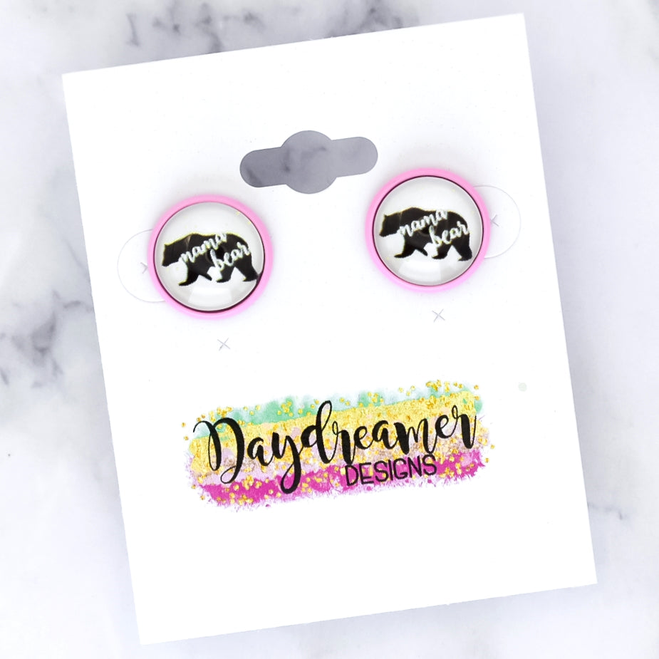 Shown are 12mm stud earrings. This is our most popular size for both adults and kids!