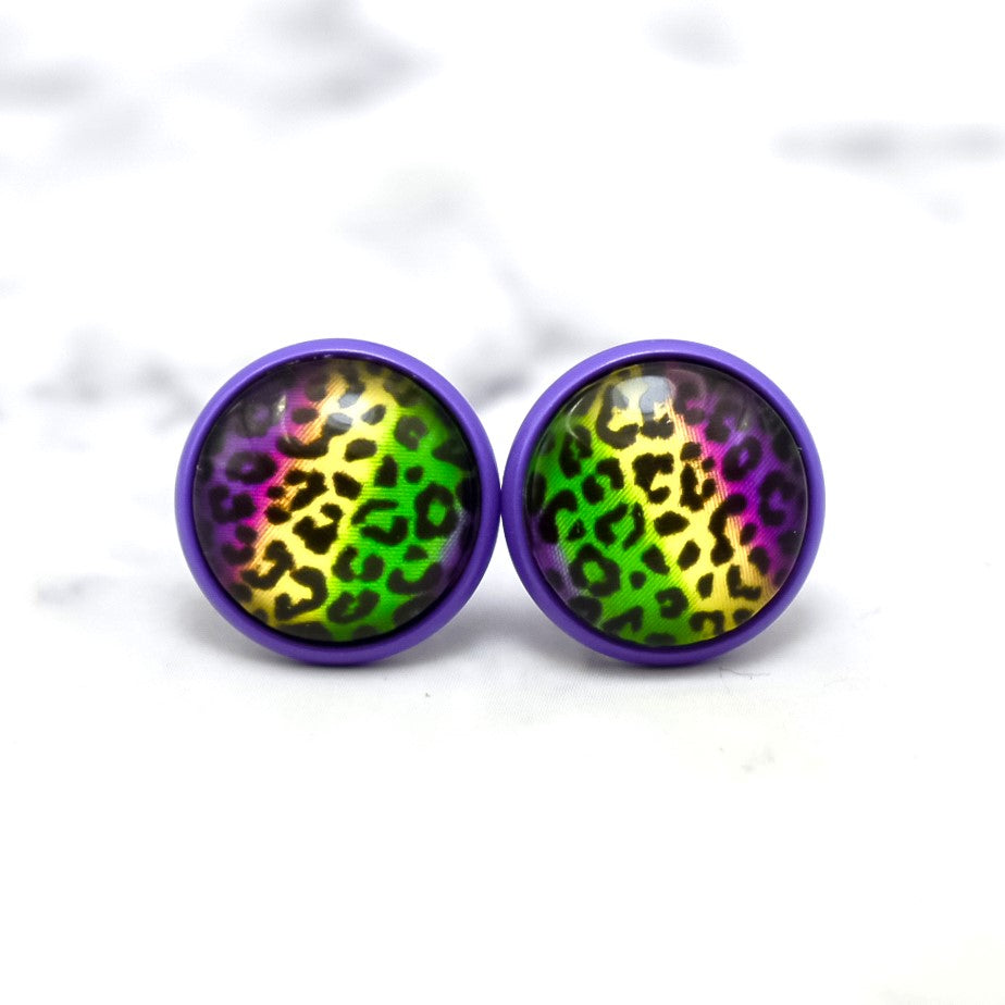 Mardi Gras Ombre Leopard Photo Stud Earrings